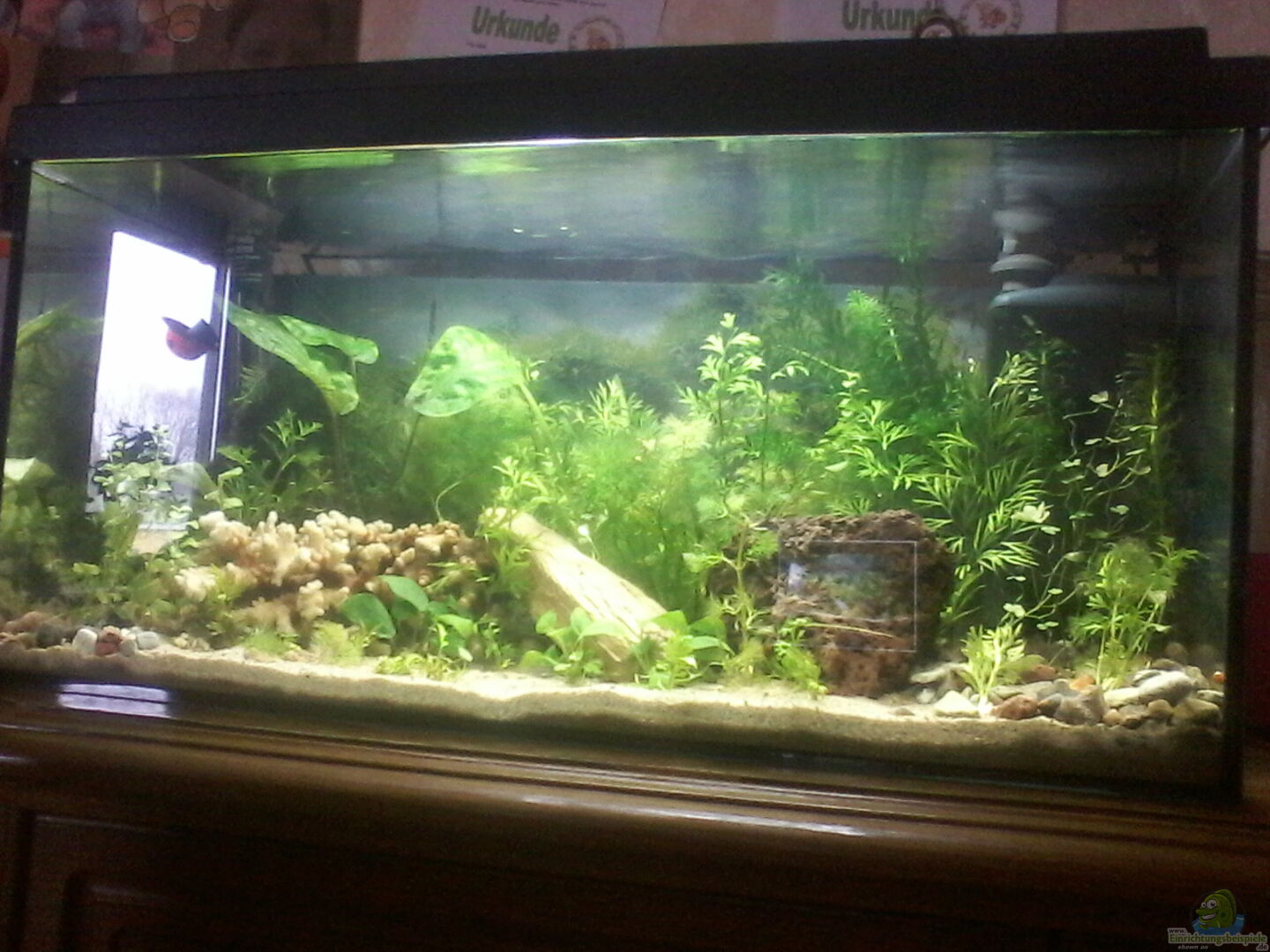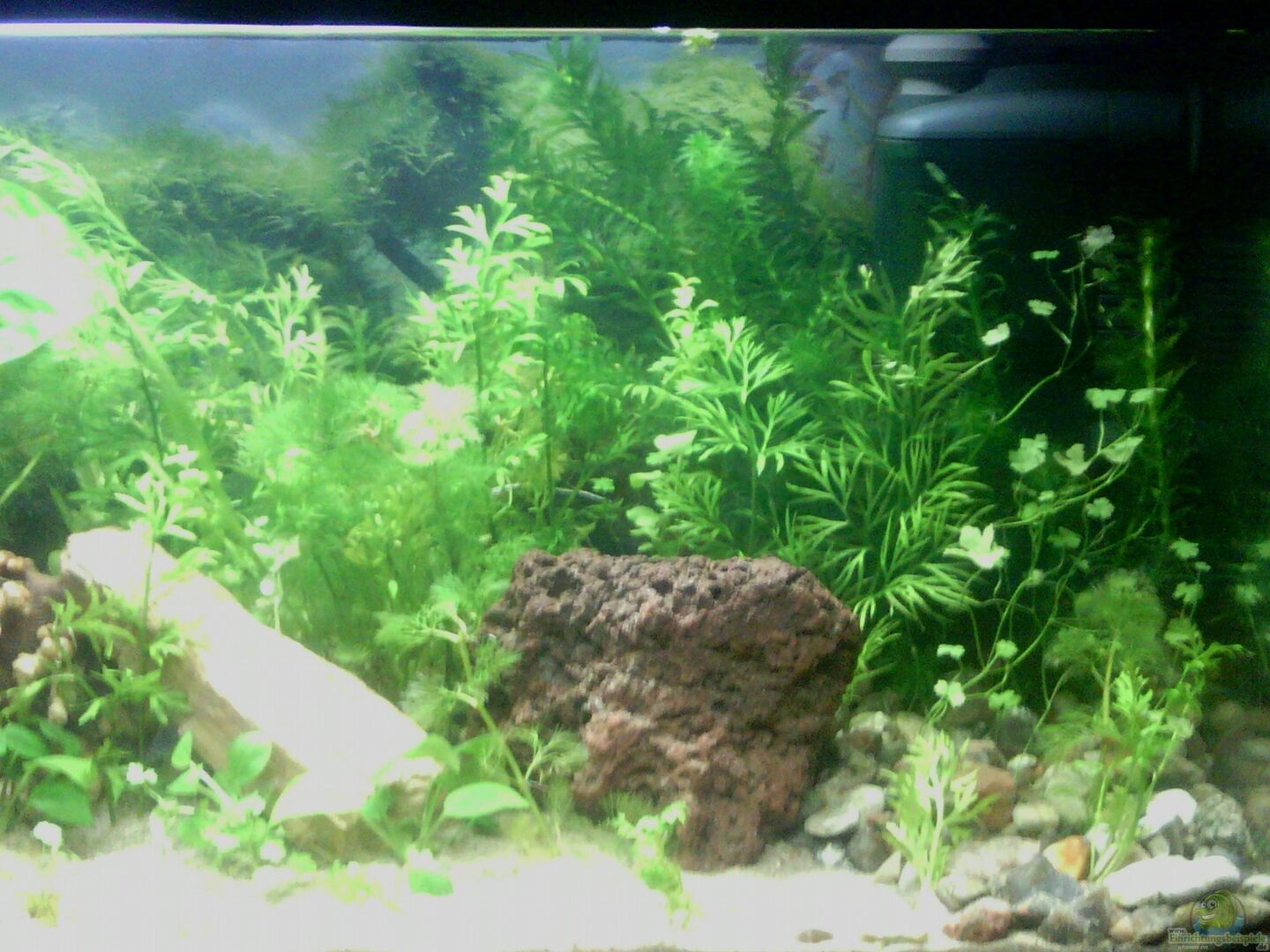 Die beim Transport und einsetzen abgebrochen Pflanzenteile habe ich im Vordergrund zur Dekoration benutzt. Wenn ich Glück habe wachsen sie an und können irgendwann in den Hintergrund ziehen.