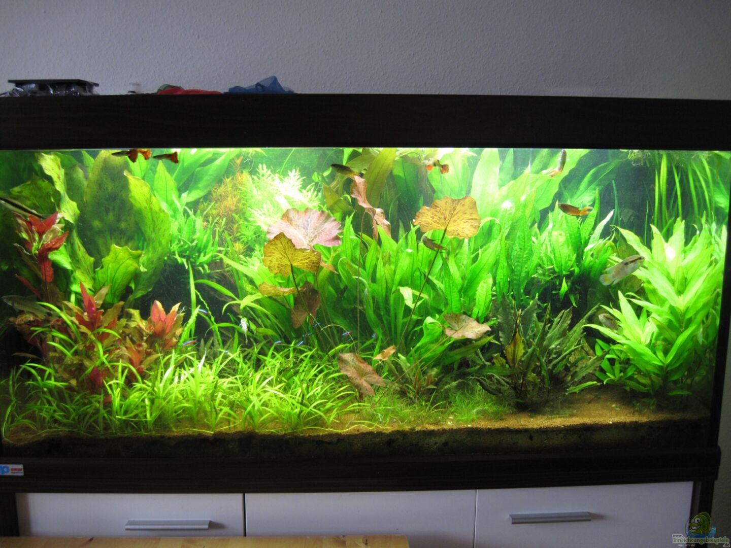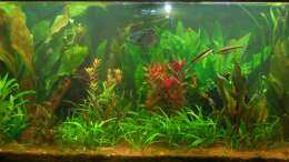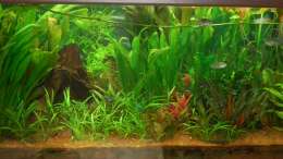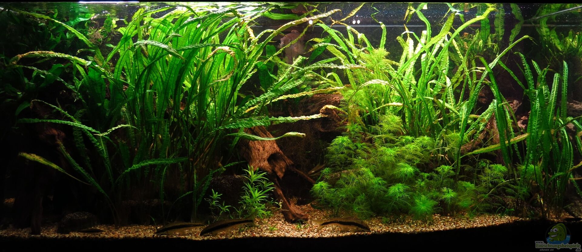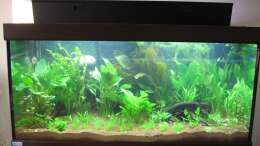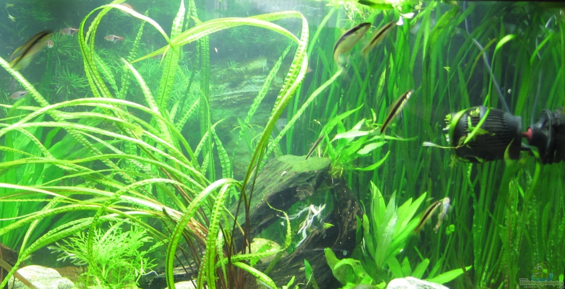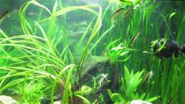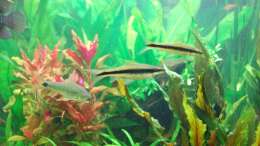 Die Siamesichen Rüsselbarben sind schön als Schwarmfische zu beobachten. Zudem befreien sie die dünnen Blätter und die Blattränder noch von Algen. Obwohl das Aquarium nur 130 cm lang ist, ist es aufgrund seiner gro??en Tiefe und Höhe dennoch für die Rüsselbarben geeignet, denn sie nutzen das volle Volumen zum Schwimmen aus.