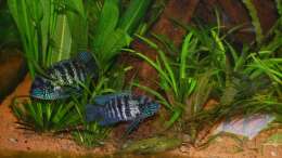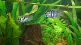 - Da sich mein Blaupunktbuntbarsch-Pärchen nach 2 Jahren nicht mehr so richtig versteht (es kommt kein Nachwuchs mehr durch), wurden 3 neue Blaupunktbuntbarsche hinzugefüght. Es sind alles Weibchen, weil das Mänchen kein weiteres Männchen neben sich duldet. Ich hoffe diese Zusammensetzung klappt dauerhaft. Die Weibchen sind noch nicht vollständig ausgewachsen.