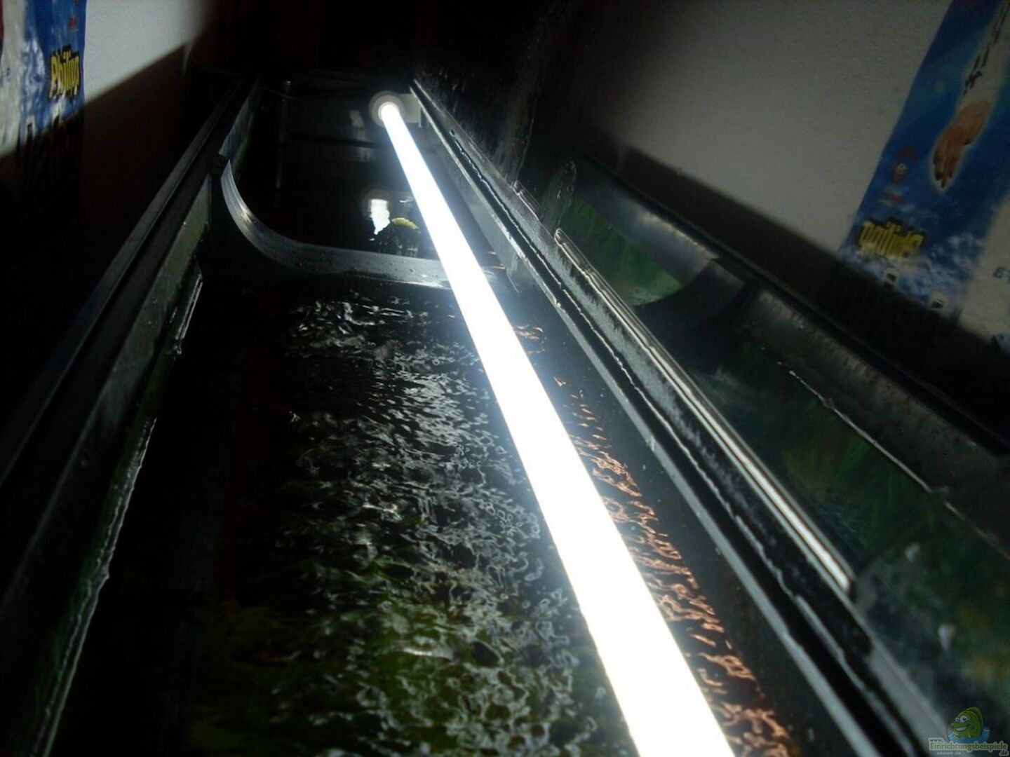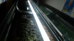 Habe auf der Unterseite (also die seite, was näher am Wasser liegt) mit einem Chrom Stahl Blech bestückt, damit das Aquarium heller wirkt.