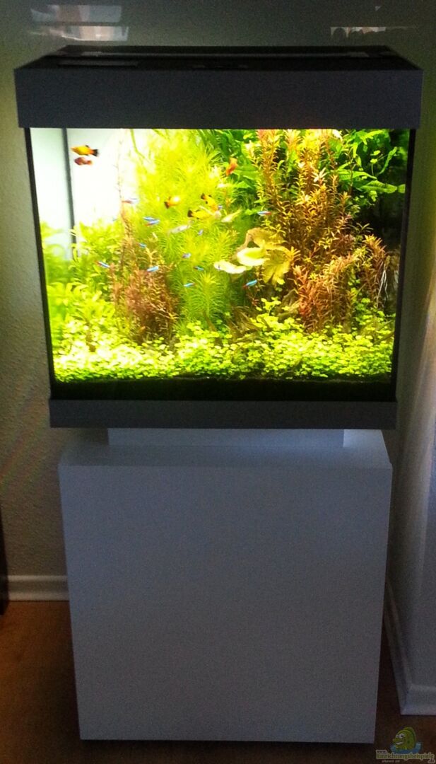 (40 x 20mm Aluprofil mit Endkappen verschlossen und Anschlu?? für Filterwasser angebracht. LEDs mit PATTEX Epoxyd Harz (2 Komponenten direkt in der Spritze, gibts in jedem Baumarkt) am Profil befestigt und entsprechend verdrahtet. Die Platenen und Lötstellen auch mit Epoxy versiegelt.)