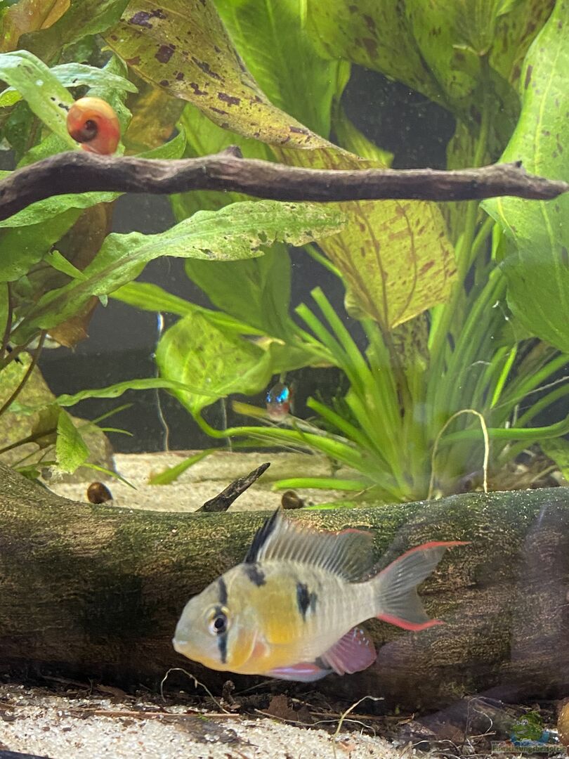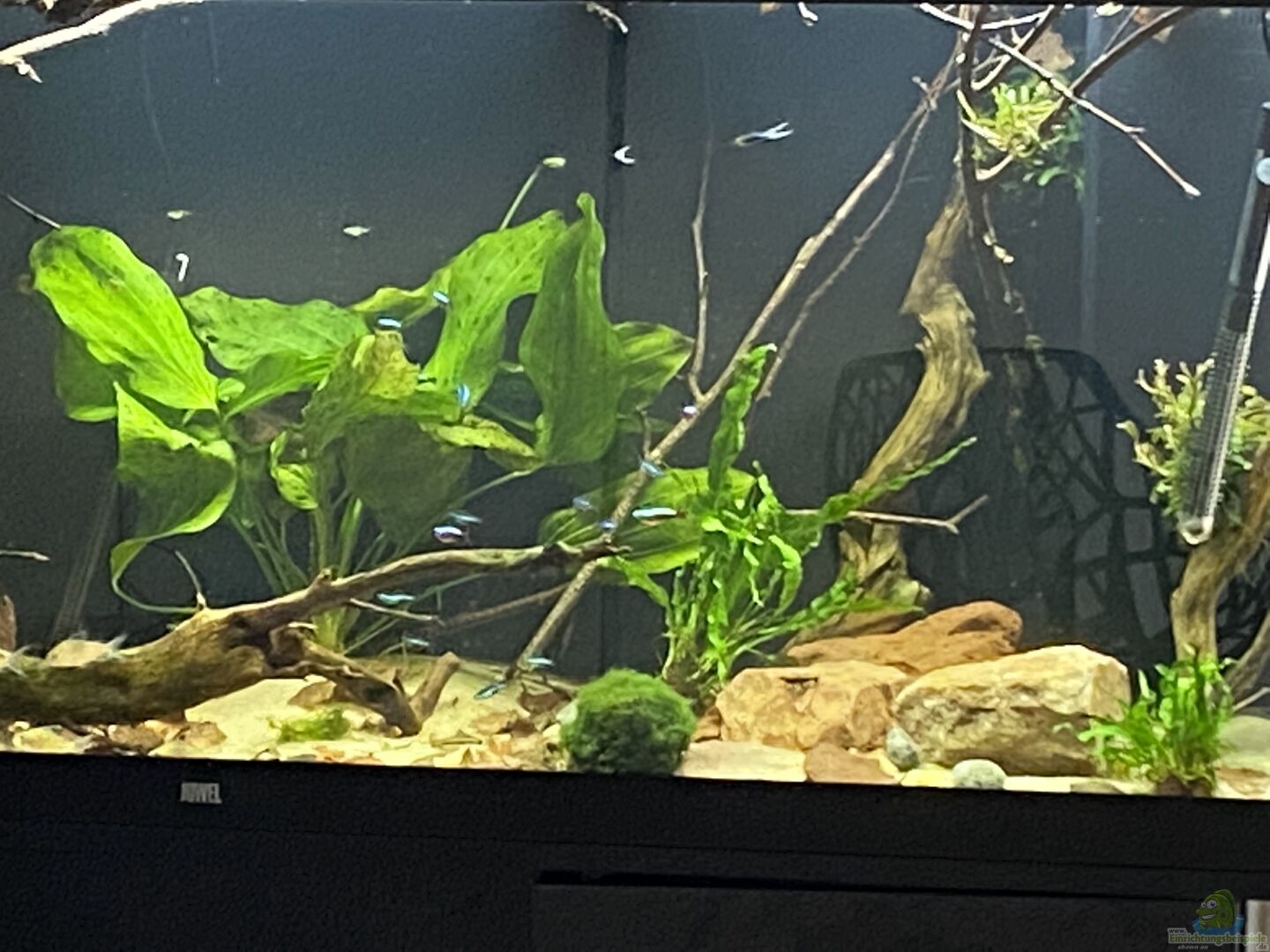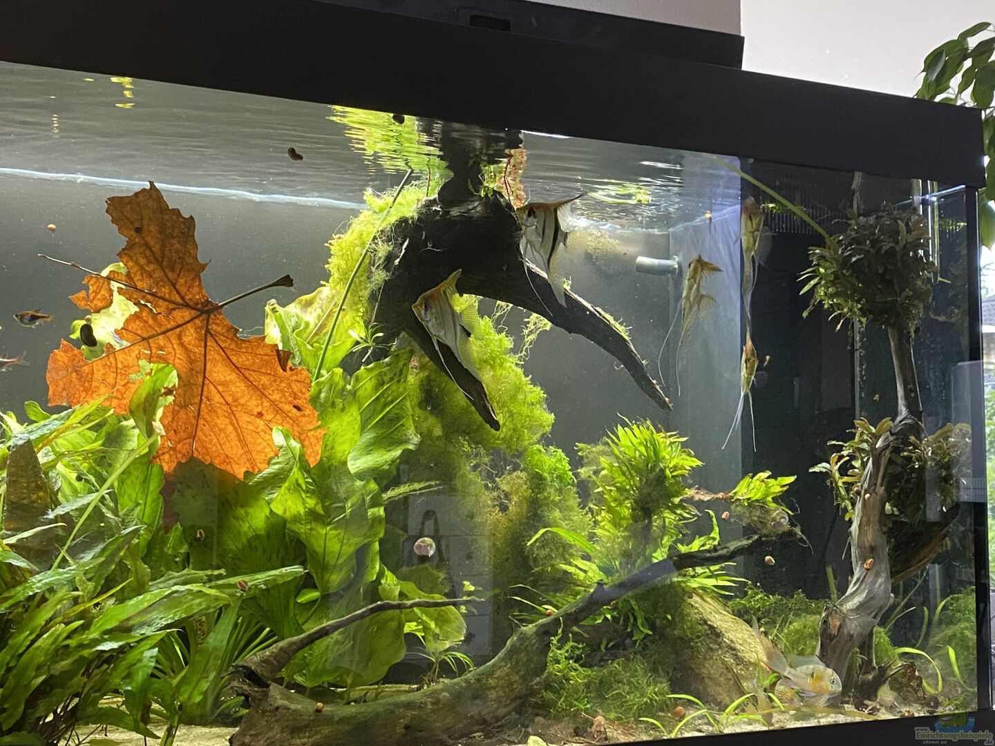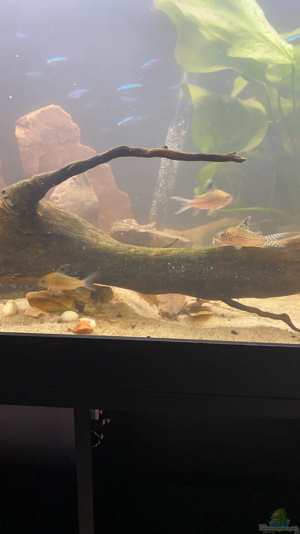 10/21: Becken eingerichtet, mit Filter aus dem alten Becken angeimpft und direkt besetzt mit Corys, Mikrogeophagus, Neons, Mikrodevario, 7 Otocinclus. 2 Otos haben den Umzug nicht gut vertragen und sind innerhalb der ersten Woche verstorben.