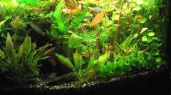31.01.10 // Neue Fotos vom Becken und ein Planzenausschnitt. Habe in der Zeit noch etwas umgefplanzt. Leider ist die Echinodorus Ozelot ziemlich eingegangen. Ich vermute, dass das Licht einfach nicht ausreicht. Die Höhe vom Aquarium ist wohl problematisch. Die Wasserpest habe ich entfernt, wuchs nach einiger Zeit nicht mehr richtig, die Stiele wurden sehr dünn. Ansonsten bin ich zur Zeit zufrieden mit dem Becken. Der Algenwuchs hält sich in Grenzen und den Fischen geht es auch allen gut. Die Futterabwechslung scheint gut anzukommen. ;)