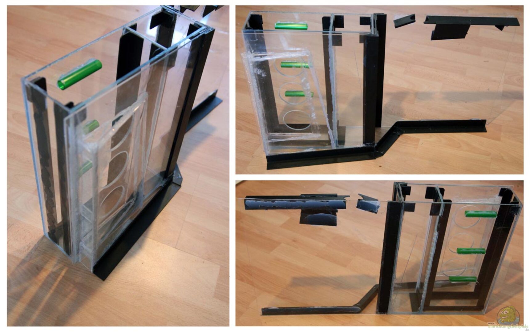 - HMF-Eigenbau, aus Acrylglas, Kunststoffprofilleisten, Filterschwamm 5cm, Kunststoffaquarienrohren.