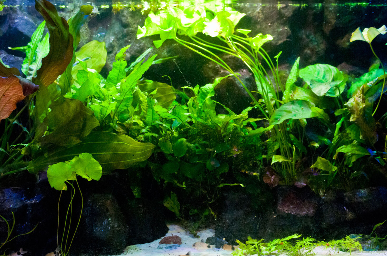 Vorwiegend Echinodorus Arten, Anubias, Javafarn, Tigerlotus und Flipperlotus