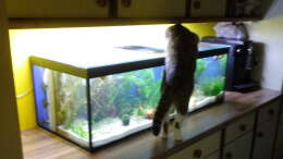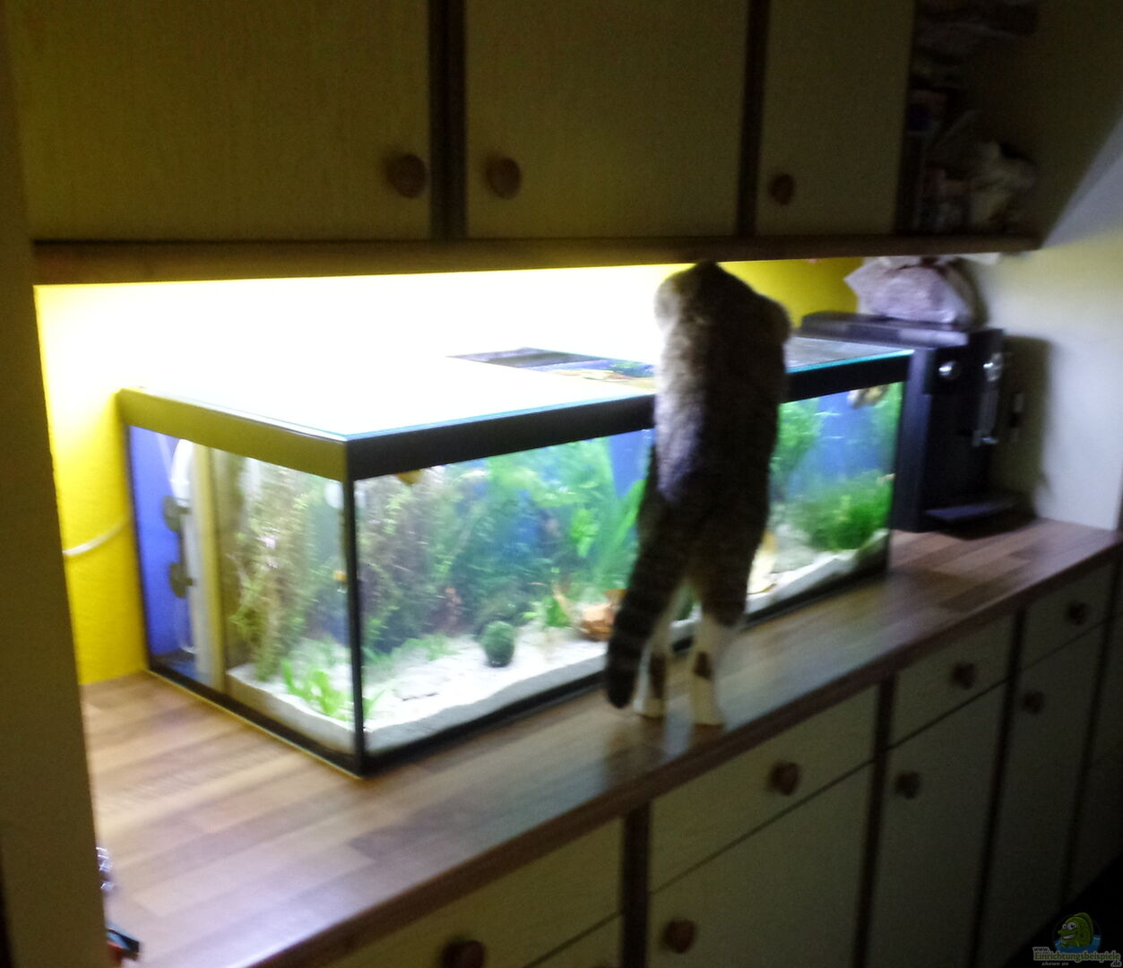 Da das Aquarium in der Küche steht und der Gefrierschrank auch, bekommen die Bewohner öfters mal einen Leckerbissen mehr ab.