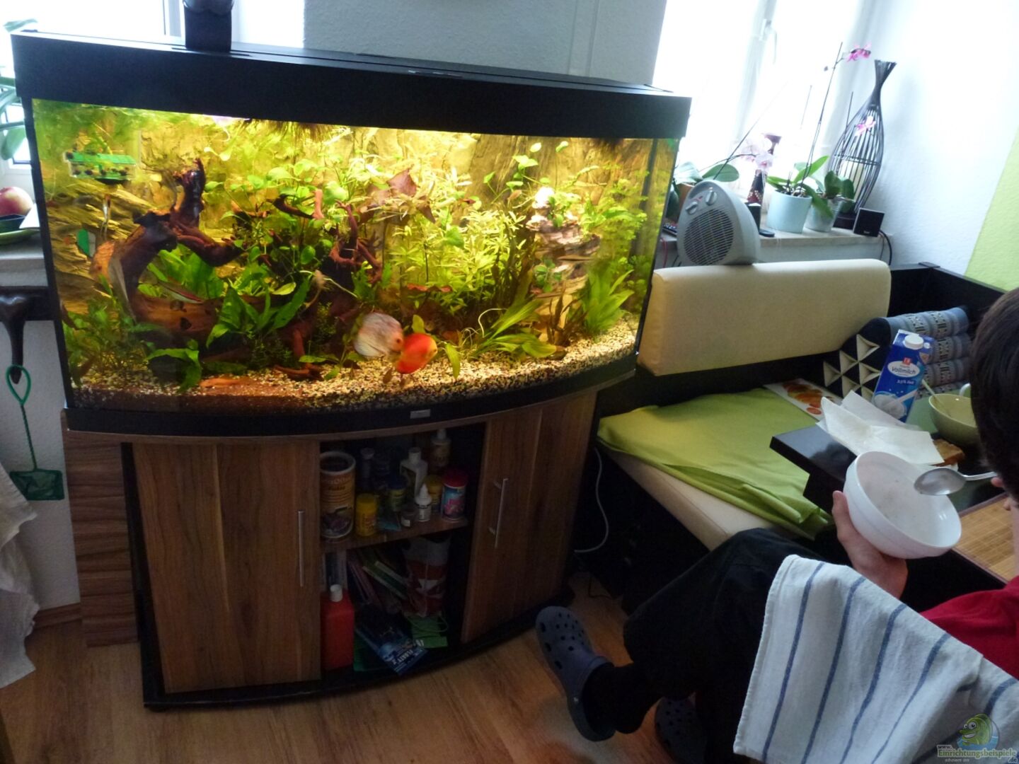 Ein Mal nach dem Wasserwechsel bzw. der Aquariumreinigung hatte ich leider vergessen die Sauerstoffpumpe anzuschlie??en. Diese läuft immer, wenn die Hauptbeleuchtung nicht aktiv ist, in der Nacht sowie am Nachmittag. Letzten Endes sind mir über Nacht folgende Fische wegen Sauerstoffmangel gestorben: 2 Siamesische Rüsselbarben(Crossocheilus siamensis), 1 Rotstrichbarbe (zu diesem Zeitpunkt hatte ich nur eine), 1 Keilpfleckbärbling, 1 Kupfersalmer. Alle anderen Fische haben es luftatmend an der Wasseroberfläche überlebt (inkl. der Diskusse).