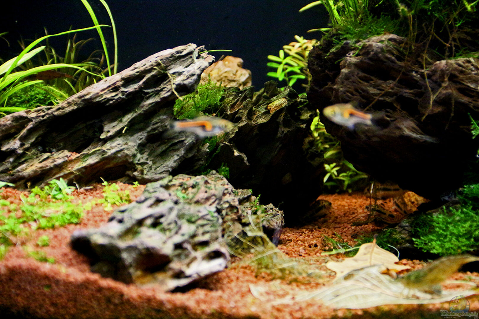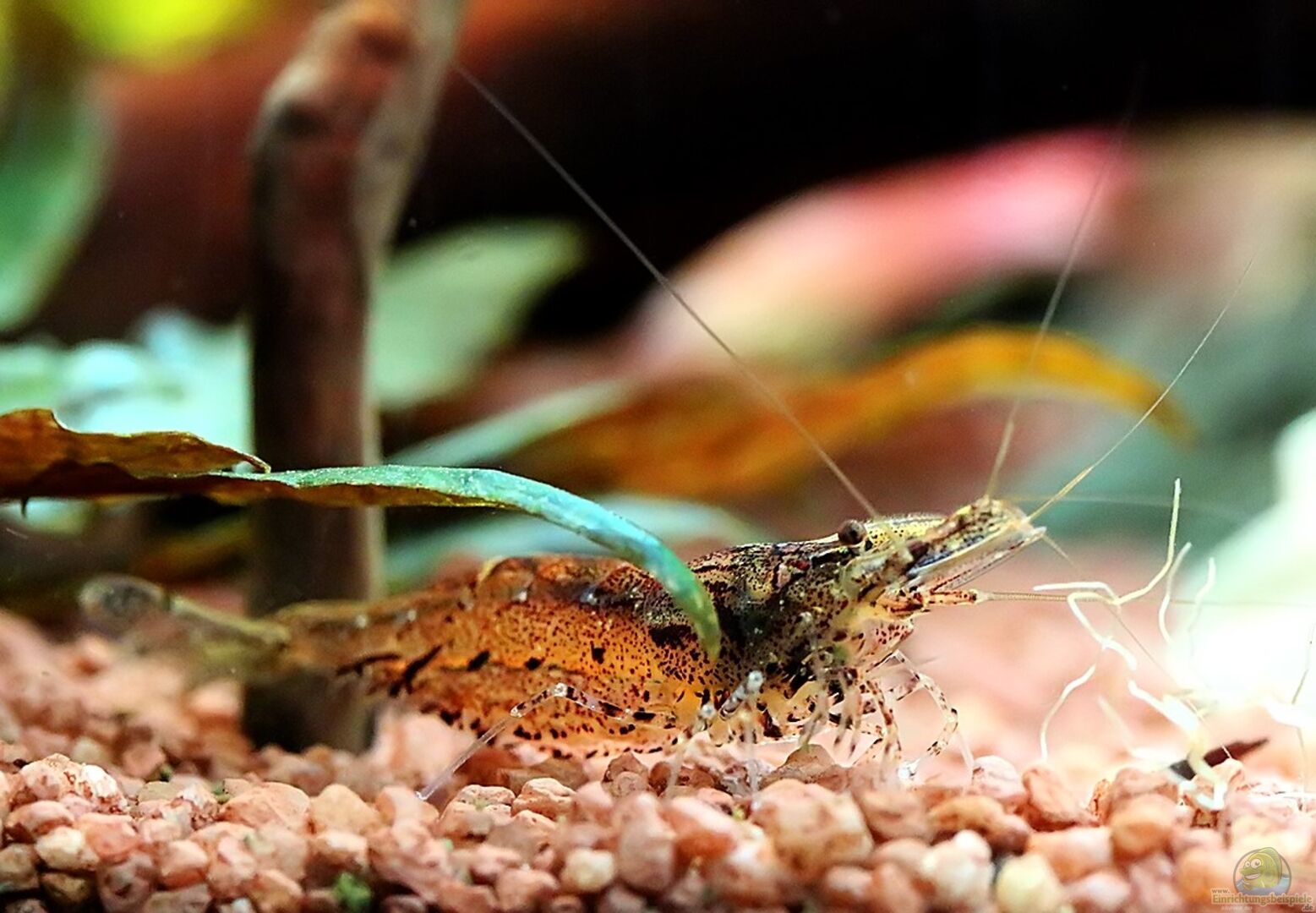 Die Zebra- & Ohrgitter-Harnischwelse kommen ebenso gut miteinander klar (letztere wurden von einem anderen Becken übernommen). Die Amanos sind überhaupt nicht scheu und eigentlich ständig munter im Becken unterwegs - die Orangen Zwerggarnelen sind oft nicht weit.