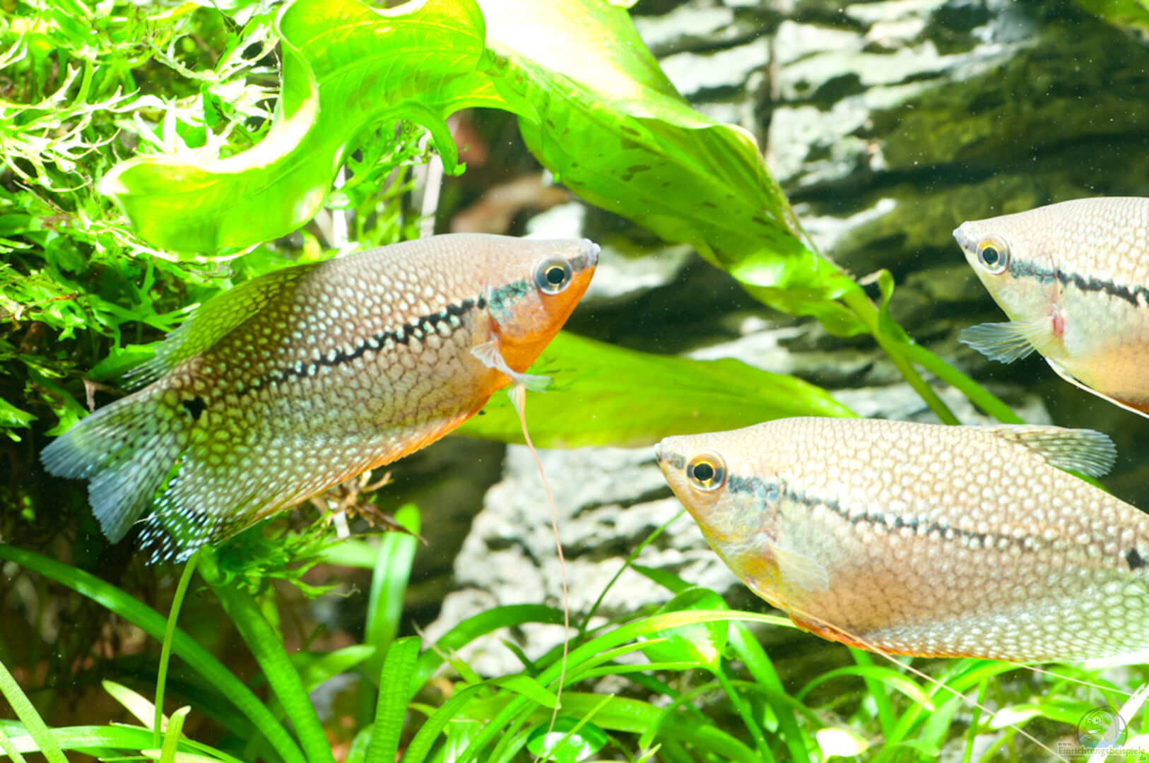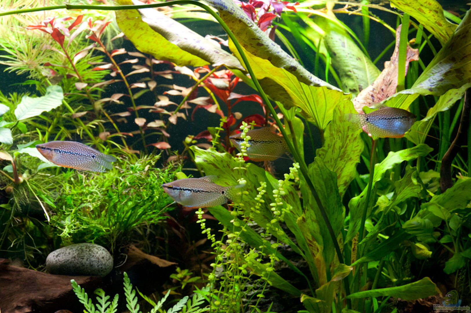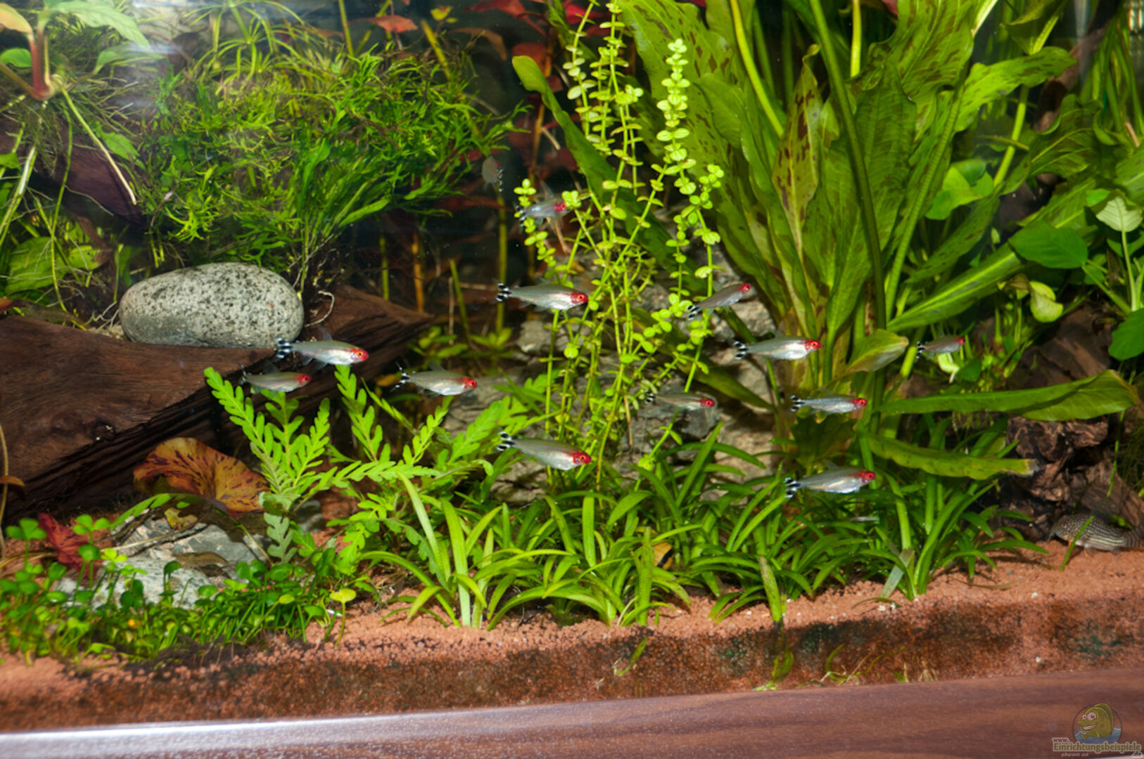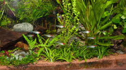 Wow, dass nen ich mal ein tolles Gesellschaftsbecken! Ein richtig toller optischer Leckerbissen. Schön bepflanzt. Auch der Besatz sagt mir zu, die Mosaikfadenfische sehen klasse aus. Einzig kleiner Kritikpunkt ist, dass für die Rotkopfsalmler die GH noch auf min. 10 gesenkt werden könnte. Du könntest auch eventuell noch für die Corys ne kleine `Sandinsel` einrichten, aber ich denke die kommen auch gut mit der Körnung vom Dennerle Kies zurecht.(eigene Erfahrung)