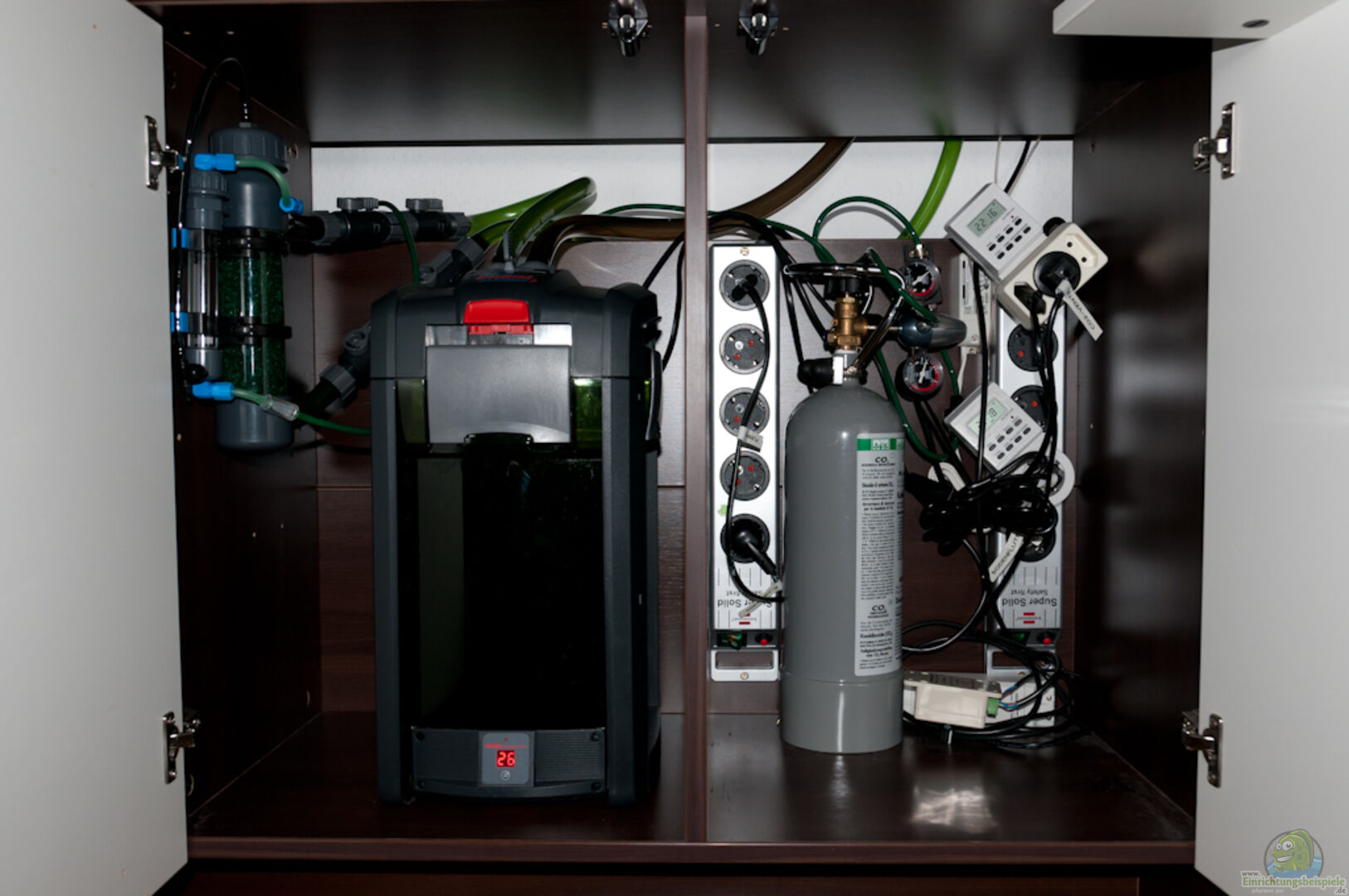 Becken ist ein Eheim Scubaline 120 mit Unterschrank in wenge/weiss