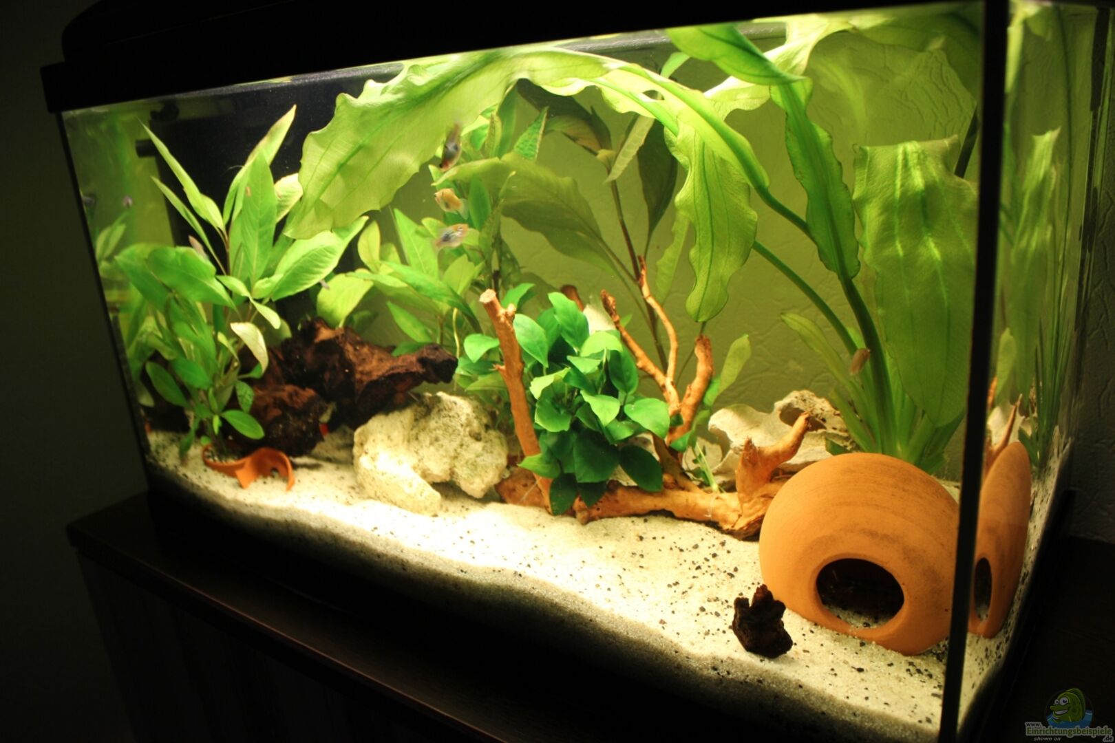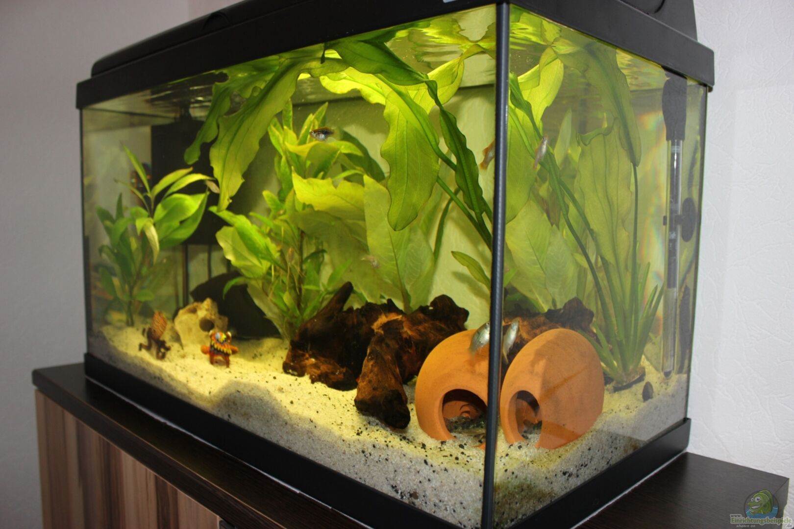 Die Glasdeko ist nicht so ganz mein Geschmack, ich glaube auch der Meisten hier auf diesen Seiten nicht. Es geht ein wenig in Richtung Sponge-Bob Aquarium für Kinder. Aber bleibt selbstverständlich deine Entscheidung.