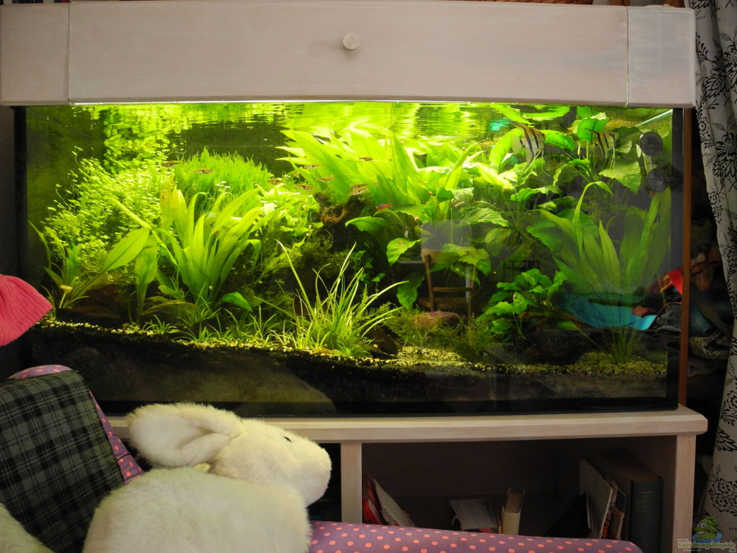 Die Keilfleckbärblinge und Neons wirken neben den Skalaren immer kleiner und fressgefährdeter, daher habe ich mich von ihnen trennen müssen.