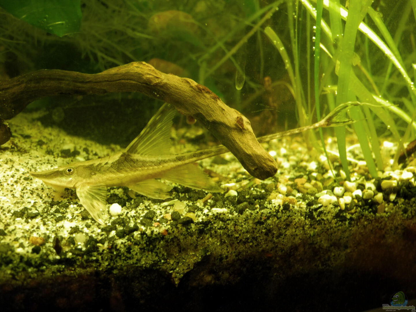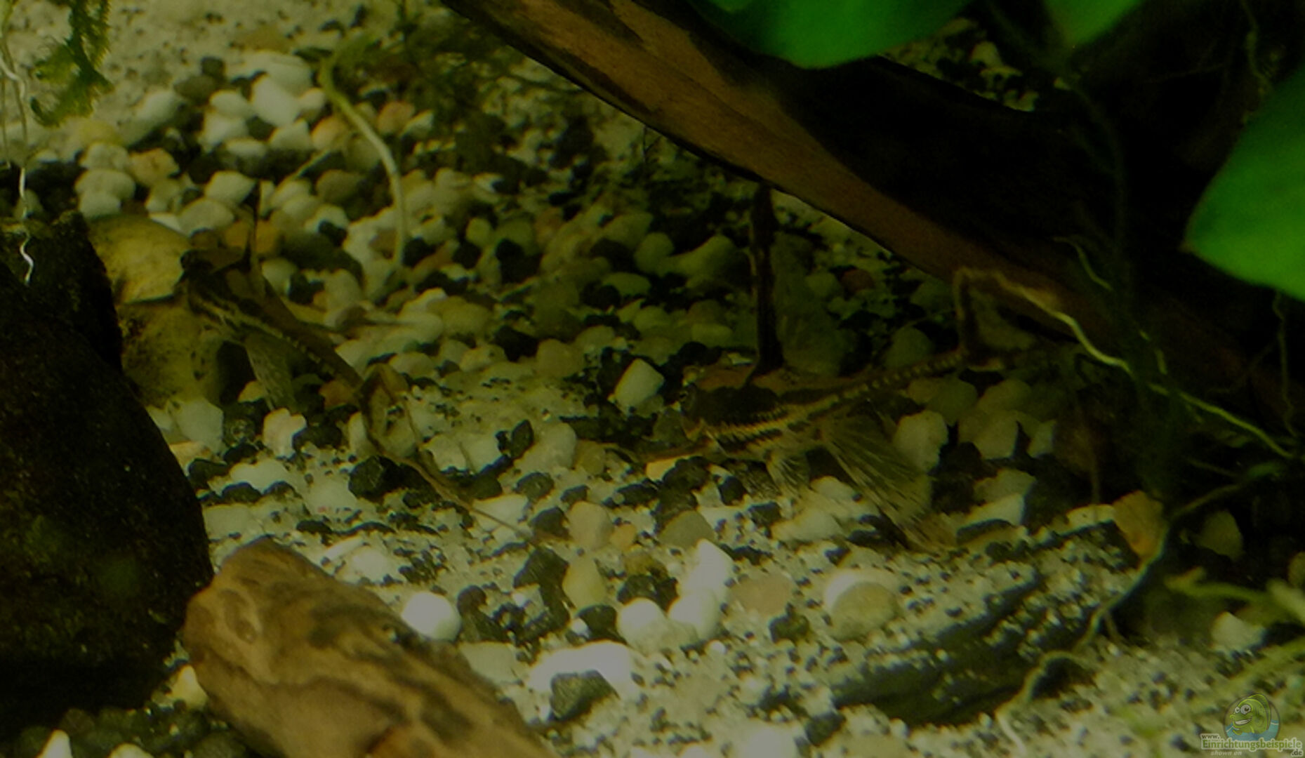 Da ich oft beobachtet habe, dass die Skalare auch gerne an das Welsfutter gehen füttere ich einmal wöchentlich rote Mückenlaven über Nacht. Diese graben sich bis zum Morgen in der Regel im Bodengrund ein, wo nur die Panzerwelse sie erreichen. Den Folgetag füttere ich nicht. Bei den Panzerwelsen beobachte ich seit dem deutlich aktiveres Schwimmverhalten. Scheint sich also zu lohnen!