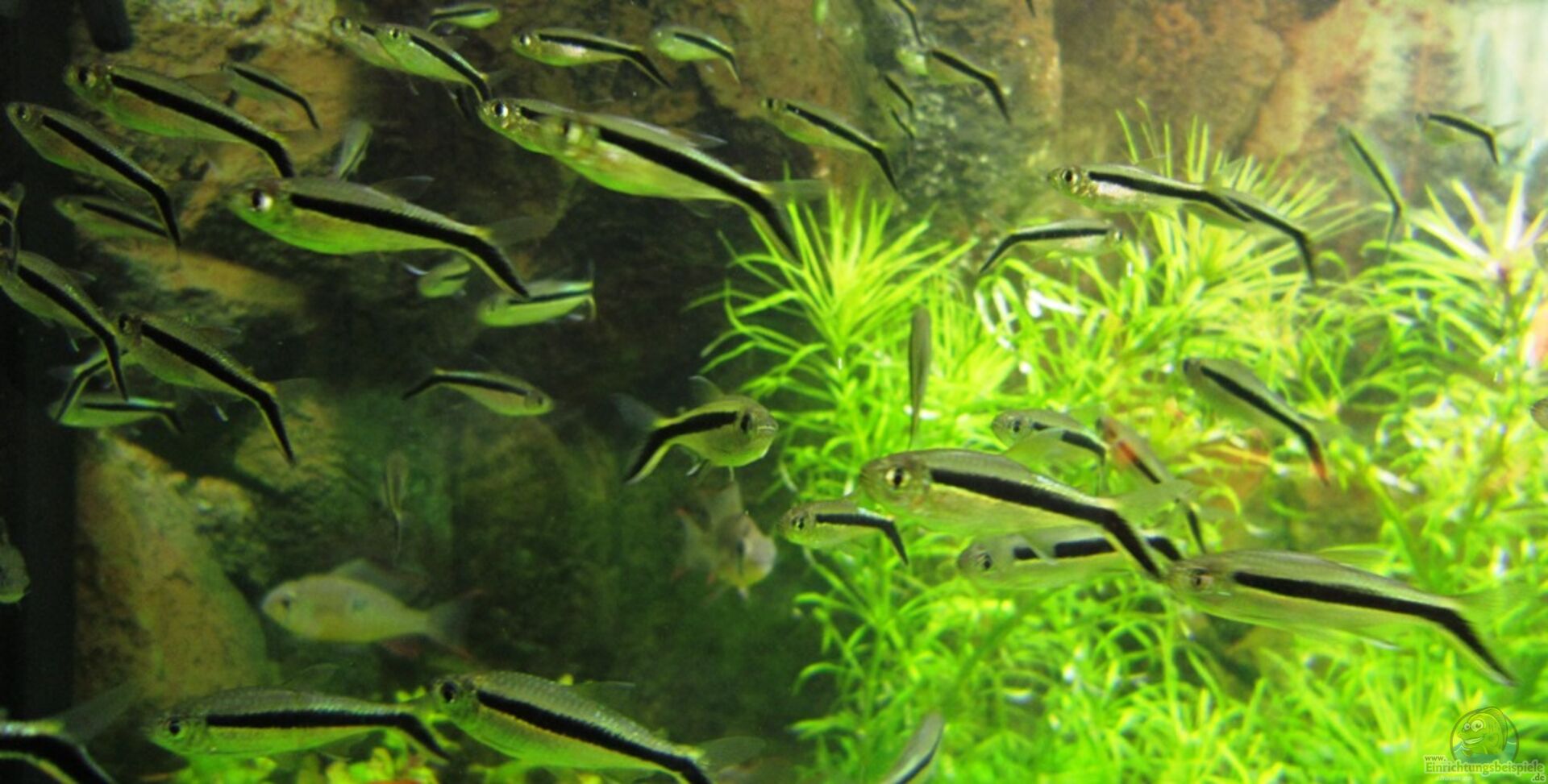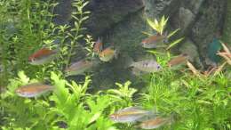 Die Kongos sind drau??en( Das Layout hat schwer gelitten) und 66 Schrägschwimmer sind eingezogen. Fantastische Fische mit einem sehr ausgeprägtem Schwarmverhalten. Bilder eingestellt.