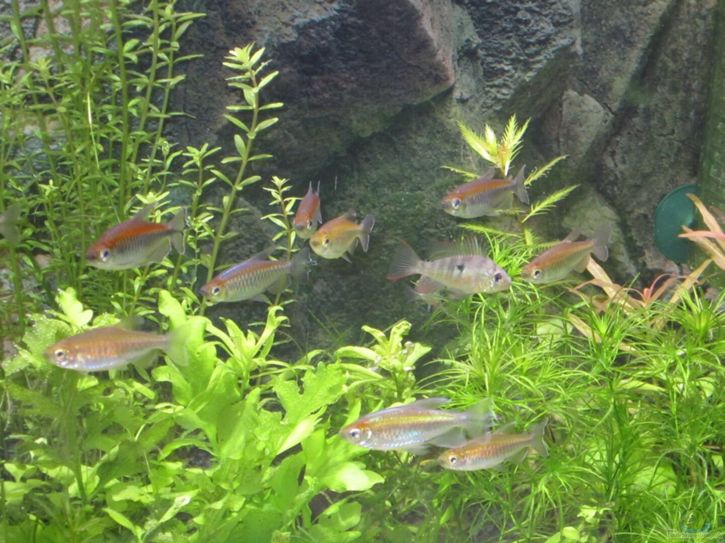 Schönes Becken mit guter Technik und gesundem Pflanzenwuchs. Der Titel ist hier programm ;) . Für meinen Geschmack ist nur ein wenig zu viel Barsch im Becken. Werden da nicht ununterbrochen die Terretorien neu beansprucht? Zumal Du auch nicht sonderbar viele Steine und Hölzer als Reviermarken im Becken hast.