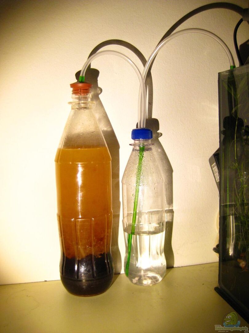 Was auch noch wichtig ist, ist ein CO² Dauertest um den CO² Gehalt zu kontrollieren und nicht durch ??berdosierung seinen Besatz ins Jenseits zu befördern. Besonders bei steigender Raumtemperatur ( Sommer ) kann die Produktion in der Gärflasche zulegen und mu?? beobachtet werden, zumindest bis genug Erfahrungswerte vorliegen und man ein Gefühl für die richtige Dosierung hat.