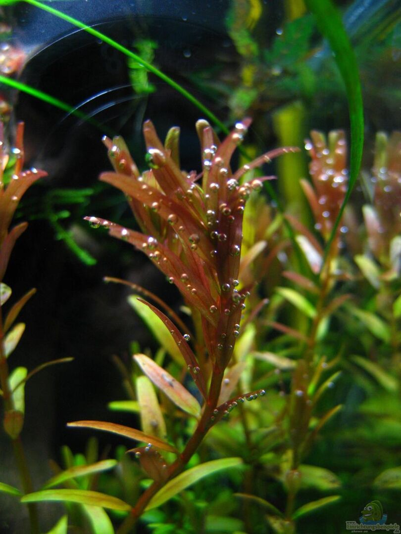 Braucht enorm viel Platz in dem kleinen Becken und gehört hier eigentlich nicht hinein. Zuletzt habe ich sie kräftig eingekürzt und die Spitzen der Triebe verschenkt. Jetzt dauerts halt etwas bis sie wieder voll da ist, aber wenigstens bekommen die anderen Pflanzen so auch mal etwas Licht ab.