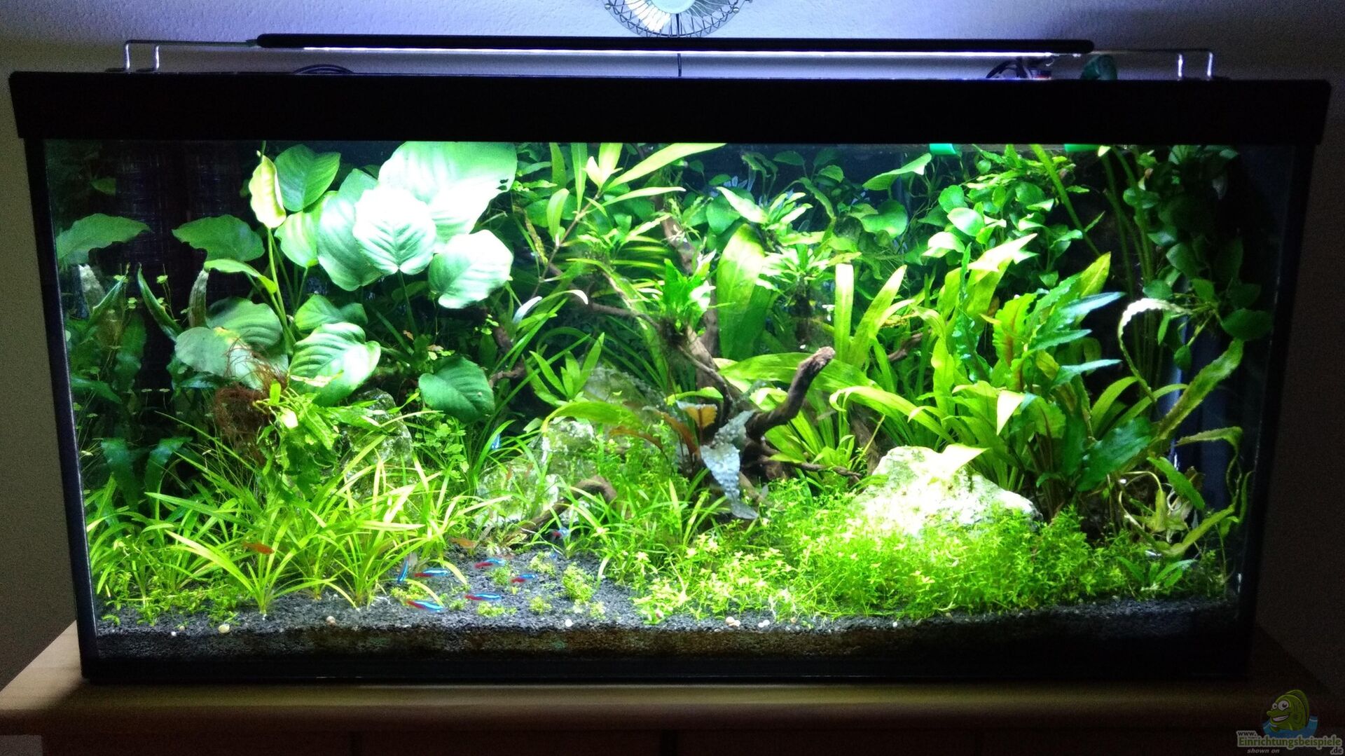 Unter dem Kies befindet sich ein Dennerle ThermoTronic Bodenfluter (Bodenheizung), zu welcher ein Heizstab parallelgeschaltet ist der sich hinter dem Mattenfilter versteckt. ??ber dem Becken hängt ein kleiner Ventilator um eine ??berhitzung des Wassers zu verhindern. Alles zusammen wird über ein Inkbird ITC-2000 Thermostat gesteuert und sorgt relativ problemlos für eine gleichmä??ige Temperatur im Becken.