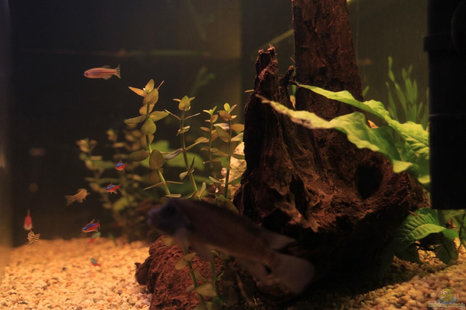 Sicherlich wirkt das Becken momentan etwas kahl, ich lasse es aber erstmal so und beobachte das Wachstum der Pflanzen und rüste eventuell noch eine CO2 Anlage nach um dem natürlichen Pflanzenwachstum noch mehr entgegen zu kommen, z.Z. zählen in erster Linie die Wasserwerte und die Düngung der Pflanzen via Flüssigdünger, sowie natürlich das Wohlbefinden meiner Fische.