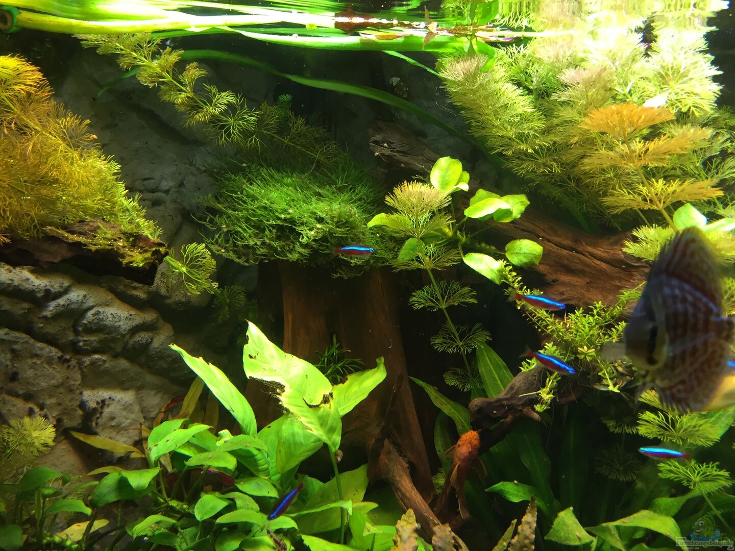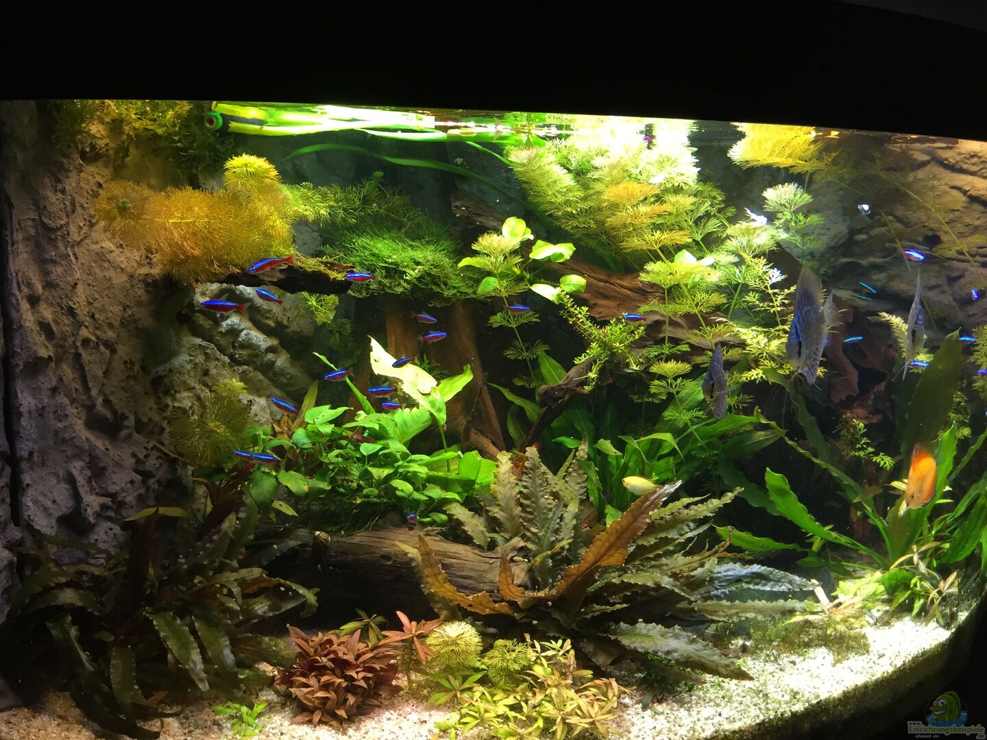Optisch sehr schön, technisch durchdacht gemacht, also ein wirklich schönes Aquarium. Irgendwann lege ich mir aber auch mal diese Diskus-Zuchtformen zu. Einfach nur um mal rauszufinden, ob die Empfehlungen wirklich so funktionieren, dass die Fische dauerhaft und über eine lange Zeit gehalten werden können.