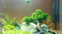 Das Becken besteht seit Dez. 2009. Zunächst nur mit schnellwachsenden Pflanzen, Java-Farn und Moos. Die Beleuchtung wird seit 8 Wochen langsam verlängert, bis max 6 Std, 4 x 39 Watt, bisher nur 3 Std täglich volle Intensität.