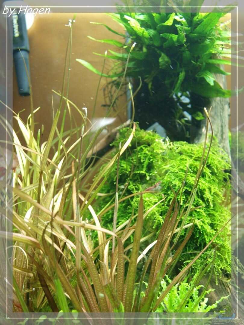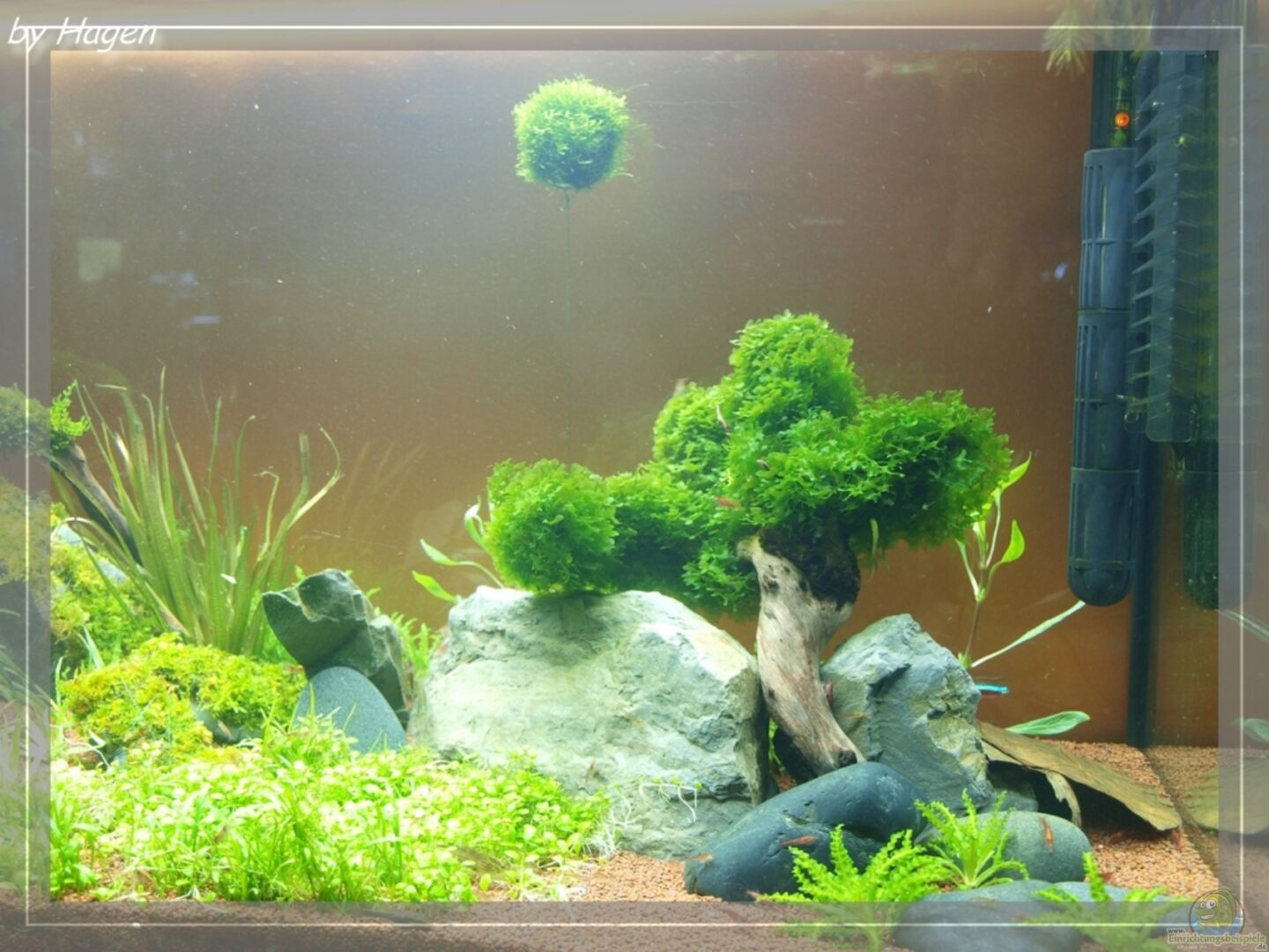 Sonst alles im grünen Bereich. Algen kaum, nur ein paar Pinselchen auf dem Holz, sonst nichts. Das erste Becken, das so prblemlos läuft