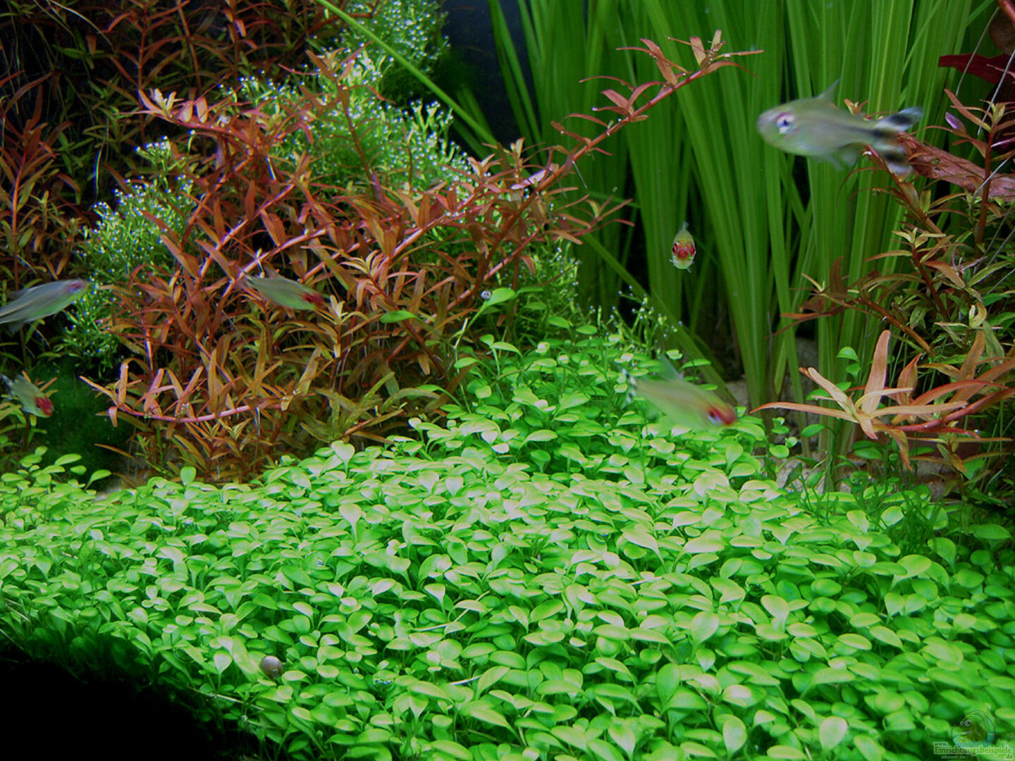25.8.09 : Einige kleine Ableger von Glossostigma elatinoides eingesetzt, soll später das Hemianthus-Polster im Vordergrund ersetzten. Dass wächst mir zu schnell in die Höhe...:-)