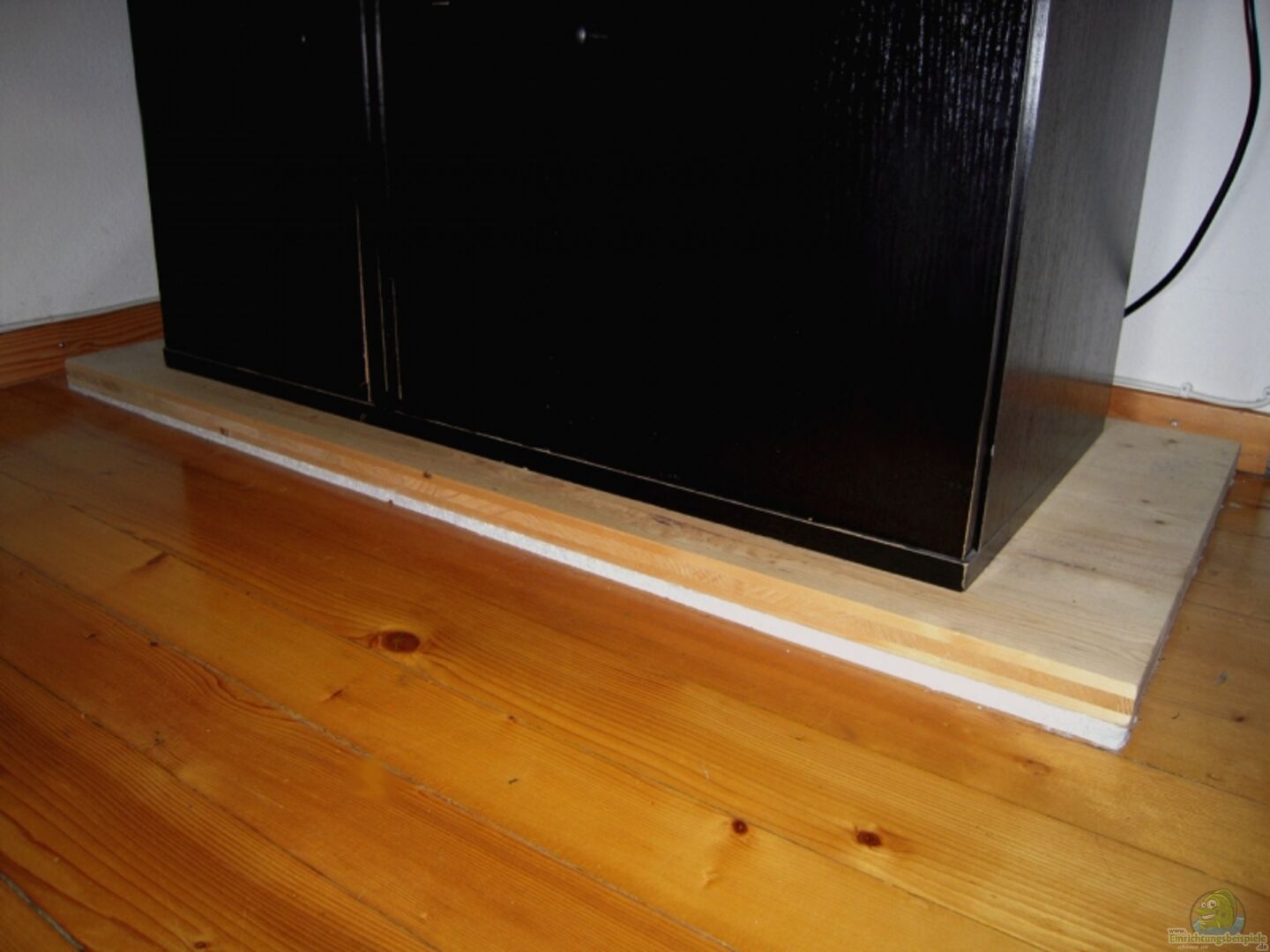 Das Aquarium steht, zwecks besserer Verteilung des Gewichtes, auf
