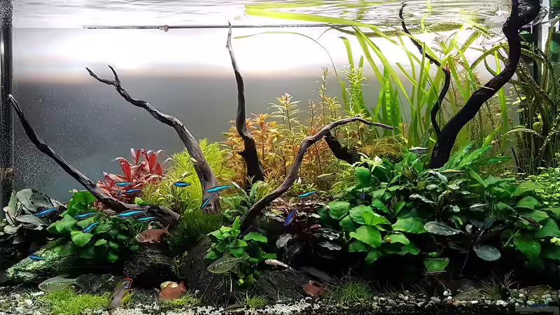 Bei diesem Aquarium habe ich eine Weile überlegt wie es werden soll. Letztendlich habe ich mich dann entschieden ein Pflanzenaquarium, angelehnt an ein Holland-Aquarium, umzusetzen. Im neuen Layout habe ich den vorderen Bereich mit Steinen und feinerem Kies ergänzt, damit die Zwergbarsche ein wenig zum "wühlen" haben. Es gibt einfach so viele Pflanzen (und selbstverständlich auch Tiere) die ich faszinierend finde.