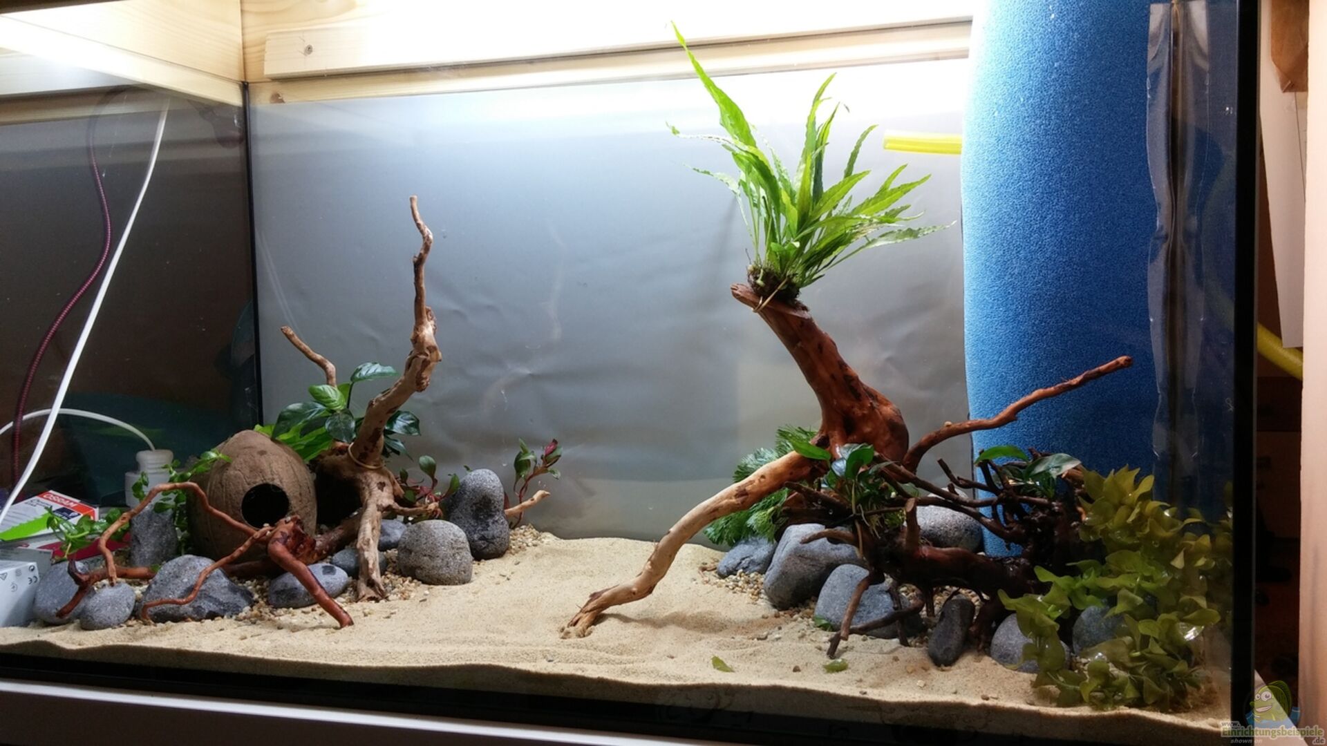 Eine schöne Insel konnten wir für 5??? im Laden ersteigern. Sie wurde eingeklebt und mit kleinen Wurzeln ausgestattet. Auf ihnen wachsen Moos und Anubis an die Oberfläche.
