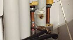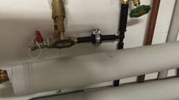 1 Elektroventil direkt hinter dem Wasserhahn. Im Falle eines Wasseraustritts erkannt durch den Leckage Detektor von GHL am Profilux wird dieses Ventil unter Spannung gesetzt und dadurch geschlossen. Somit kann kein weiteres Wasser einflie??en.