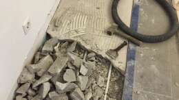 Zuerst spielte ich mit dem Gedanken von Kernbohrungen durch den Estrich in die Decke, was mir der Heizungsbauer aber ausredete. Es sei deutlich sicherer, den Estrich aufzuklopfen. Somit entschied ich mich für diese Variante. Und wenn der Estrich schon auf war, dachte ich, ist es doch nur noch 20cm bis in den darunter liegenden Hobby Keller und etwa 7m bis in den Heizungsraum. Also liess ich mir Angebote machen, ein Wasserrohr und ein Abflussrohr vom Wohnzimmer durch die Decke in den darunterliegenden Hobbykeller und von dort überputz durch zwei Wände in den Heizungskeller legen.