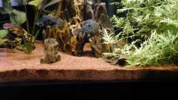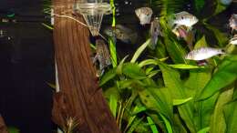 Am 21.6.2015 sind die Goldsaumbuntbarsche geschlüpft. 30-50 Stück, ein paar weniger hätten auch gereicht. Ich befürchte, es werden noch mehr. Der Bock versteht sich mit allen 3 Weibchen ziemlich gut.