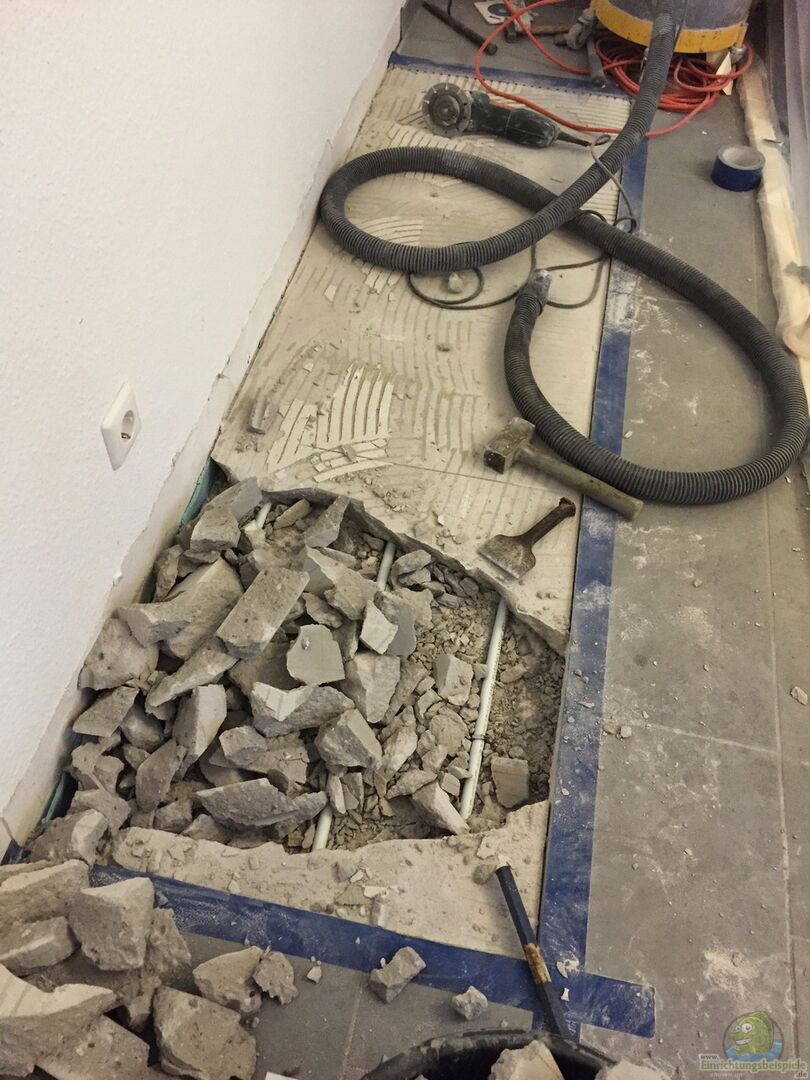 Ich beschloss, das Aquarium auf keinen Fall auf den schwimmenden Estrich zu stellen, da schon das kleine 120er Becken zu 1-2 mm Absenkungen des Estrichs führte, erkennbar an den gerissenen Silikonfugen.