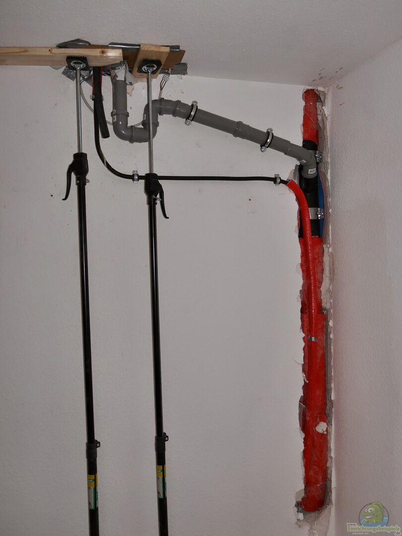 Beim Abflussrohr hatte ich Glück, da bereits ein solches vom Dachstudio in den Keller lief und zwar nur 1-2 m entfernt.