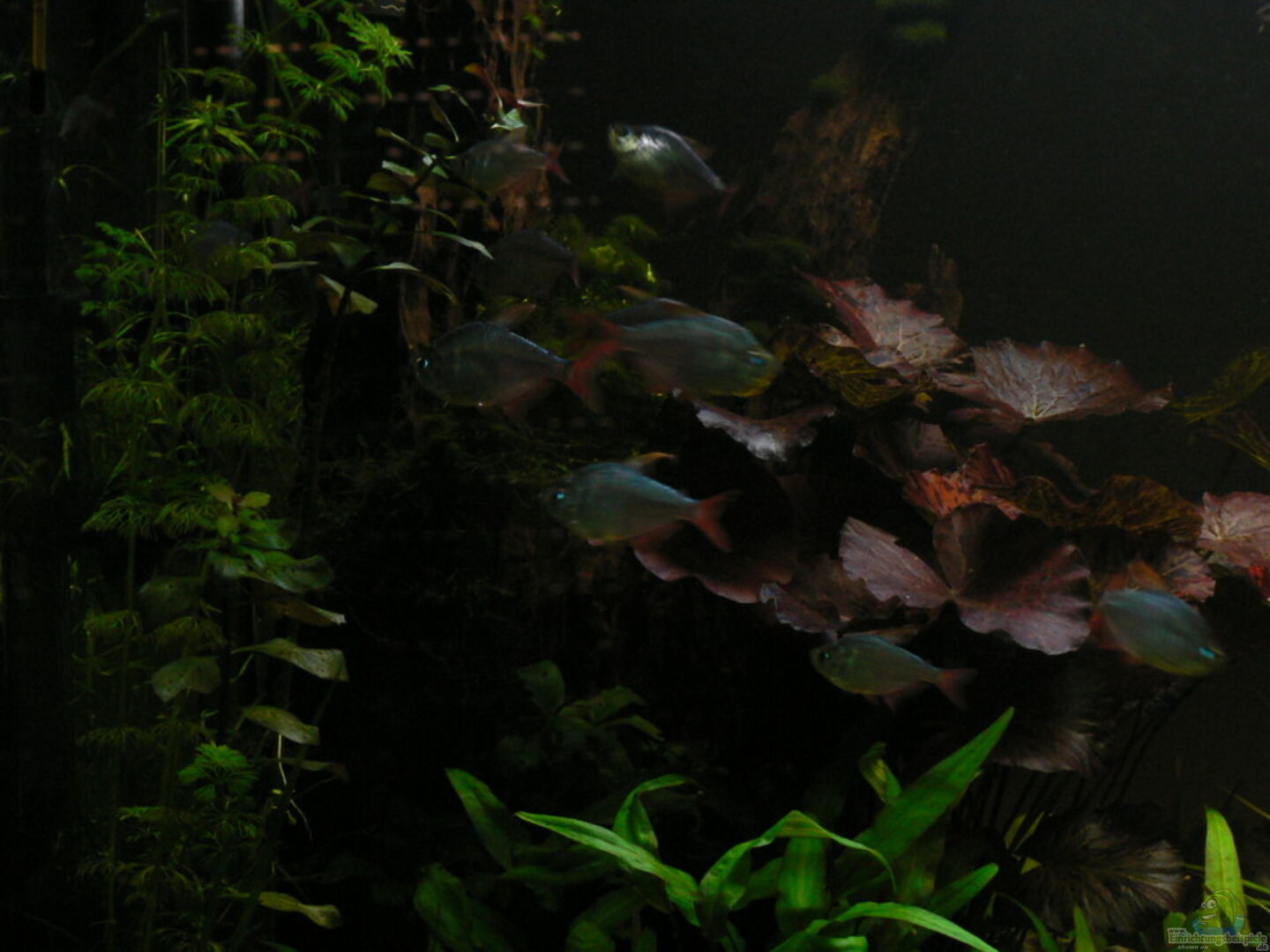 25.05.2010: Die Schwarzen Phantomsalmler haben sich prächtig entwickelt. Zuerst hatte ich nur 10 Stück im Becken welche mehr im Schutz der Pflanzen schwammen. Nun mit 22 Tieren fühlen sie sich wesentlich sicherer und schwimmen frei im Becken, tolle Balzspiele. Fazit, kleinere Salmler immer in grö??eren Gruppen halten.