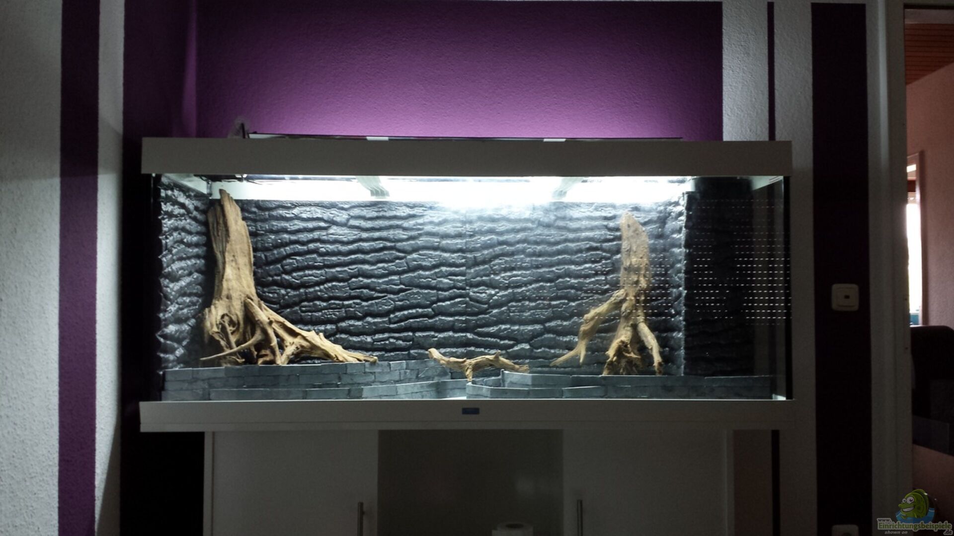 gefällt mir sehr gut. Vor allem die dunklen Materialien und das Zusammensetzen mehrerer Wurzelstücke zu einer Gro?en. Bin auf die weitere Entwicklung sehr gespannt. Wenn die Pflanzen erst mal wuchern, wird dies sicherlich ein besonders schönes Habitat!