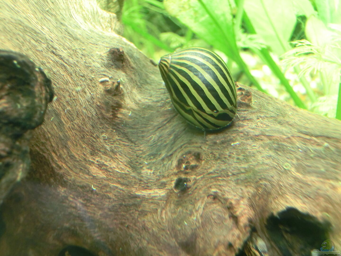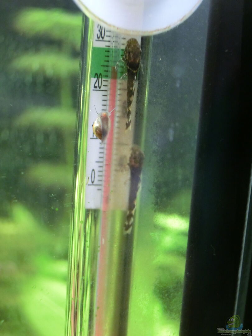22.08.2018: Neuzugänge!: Eine hübsche Cappuccinoschnecke und, als Vordergrundverschönerung, Zwergkleefarn. Den Nitratwert habe ich auch getestet, siehe Wasserwerte.