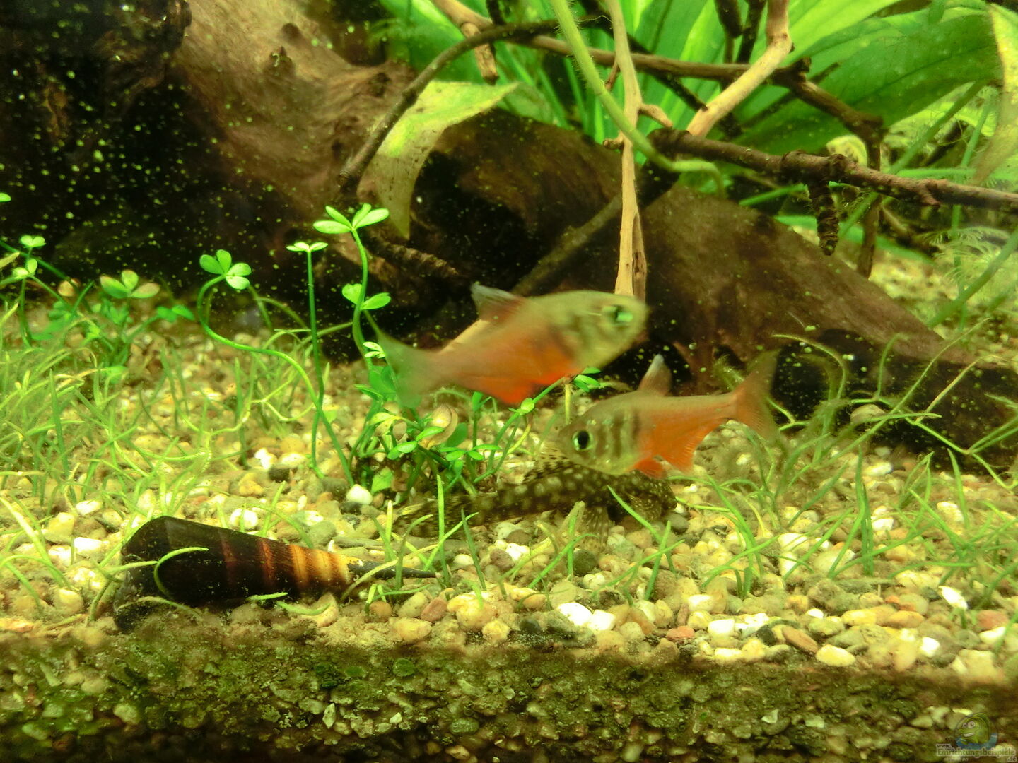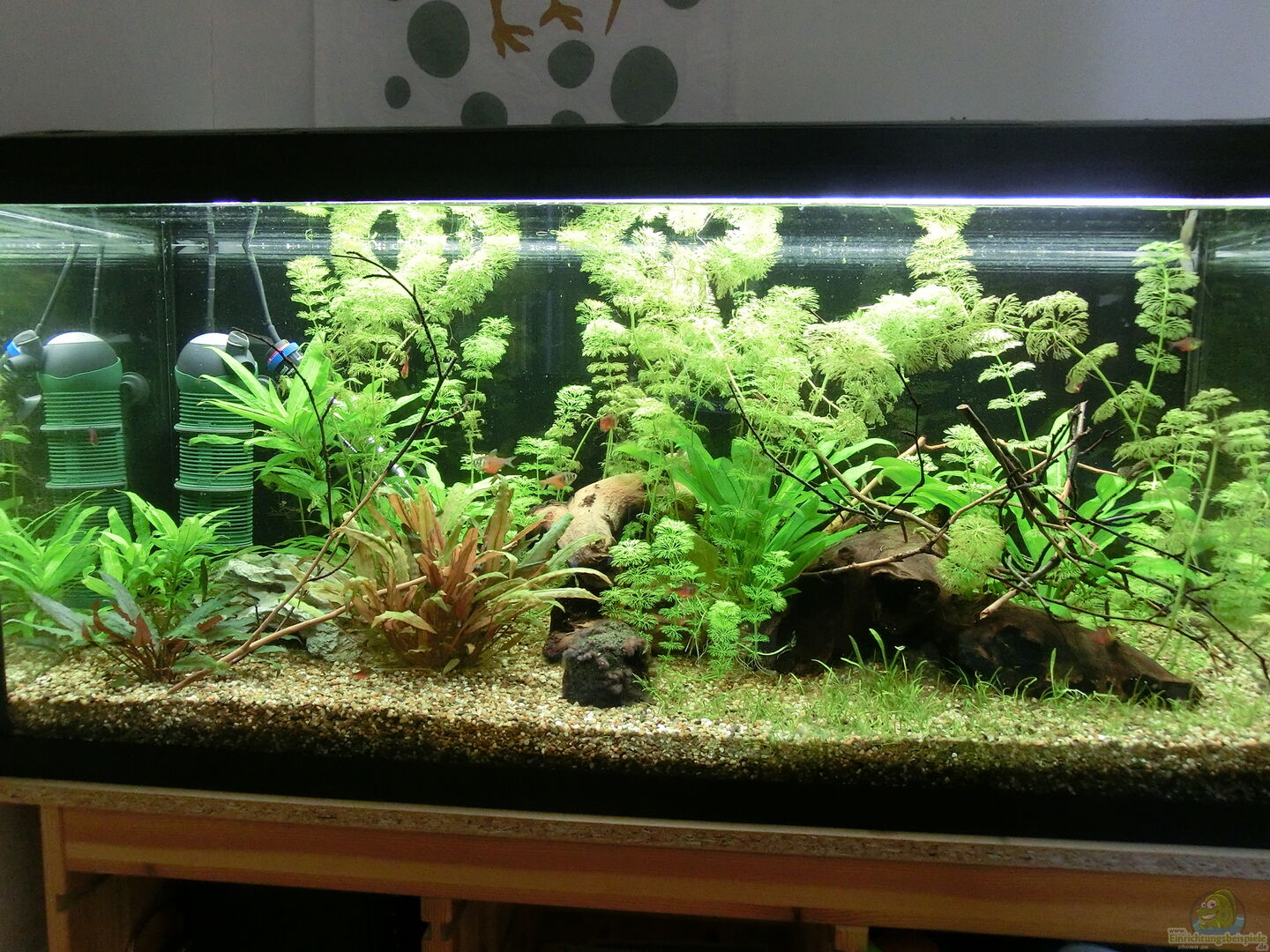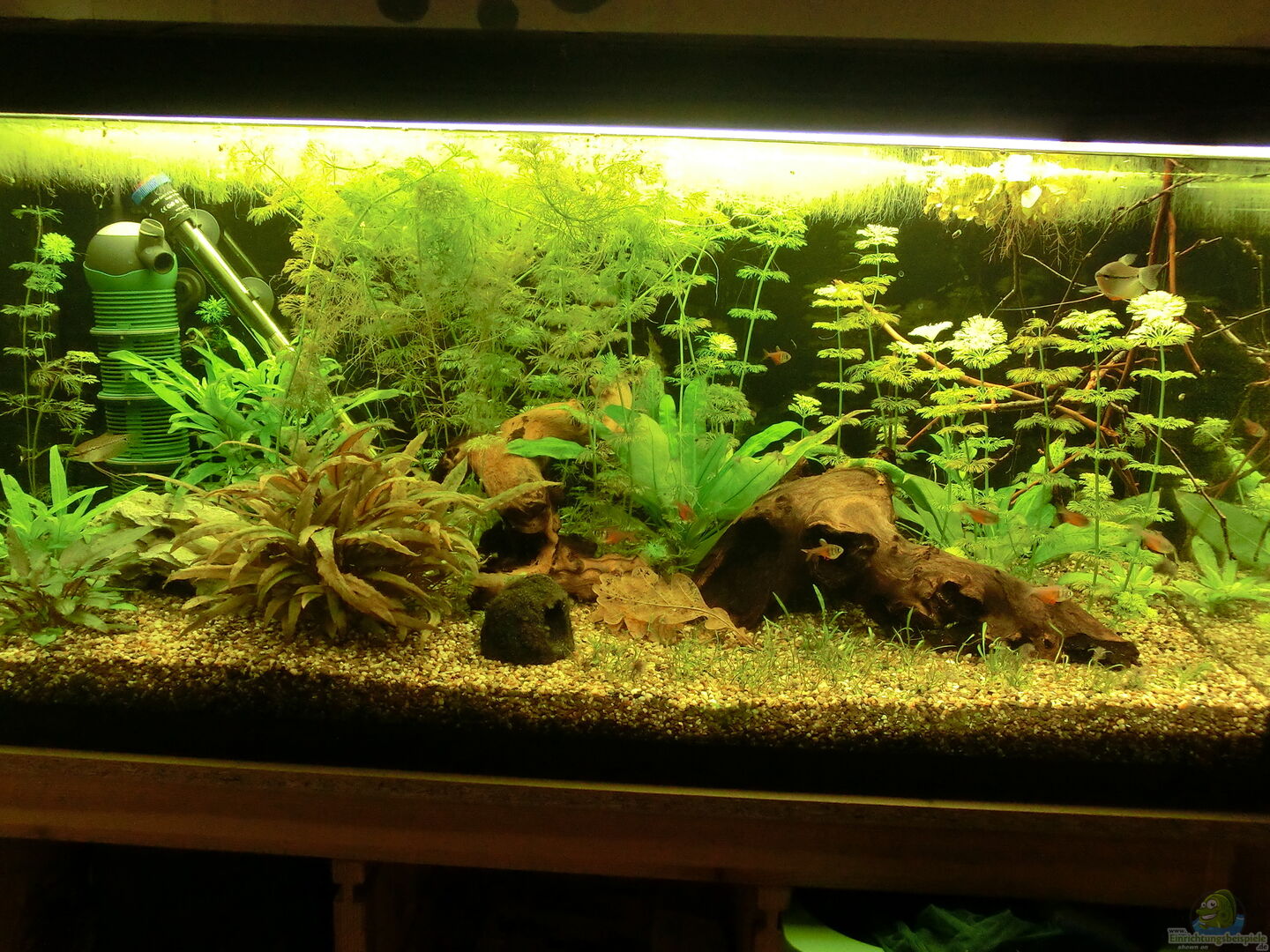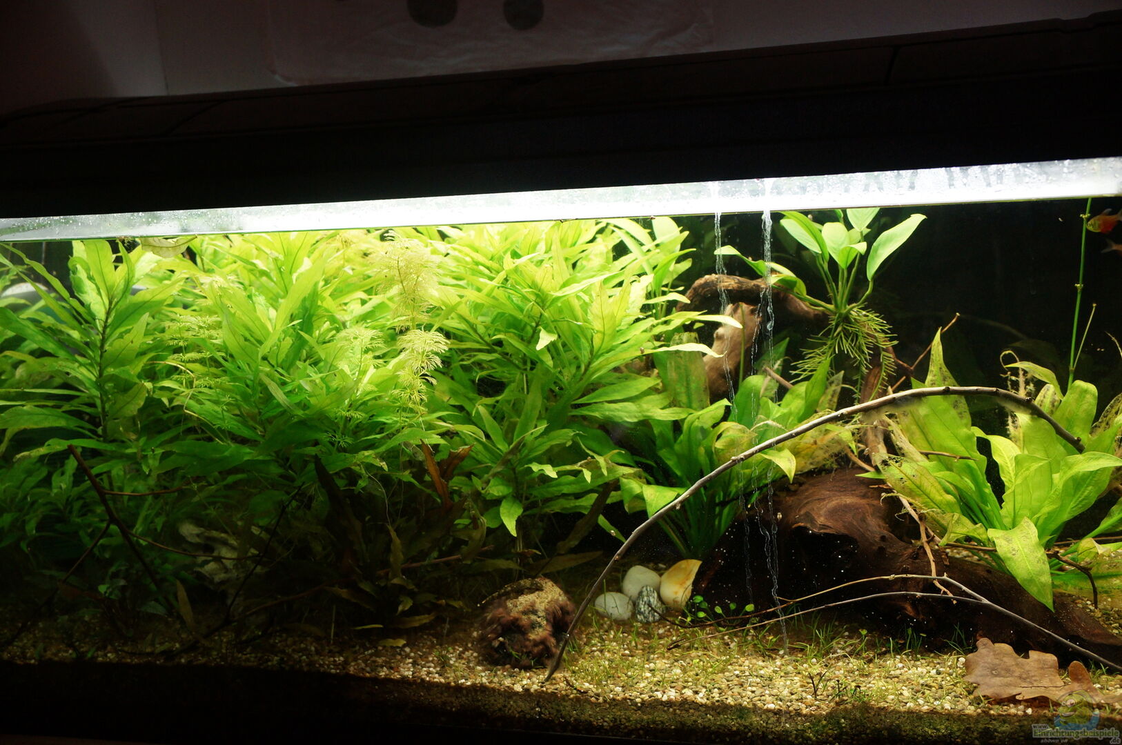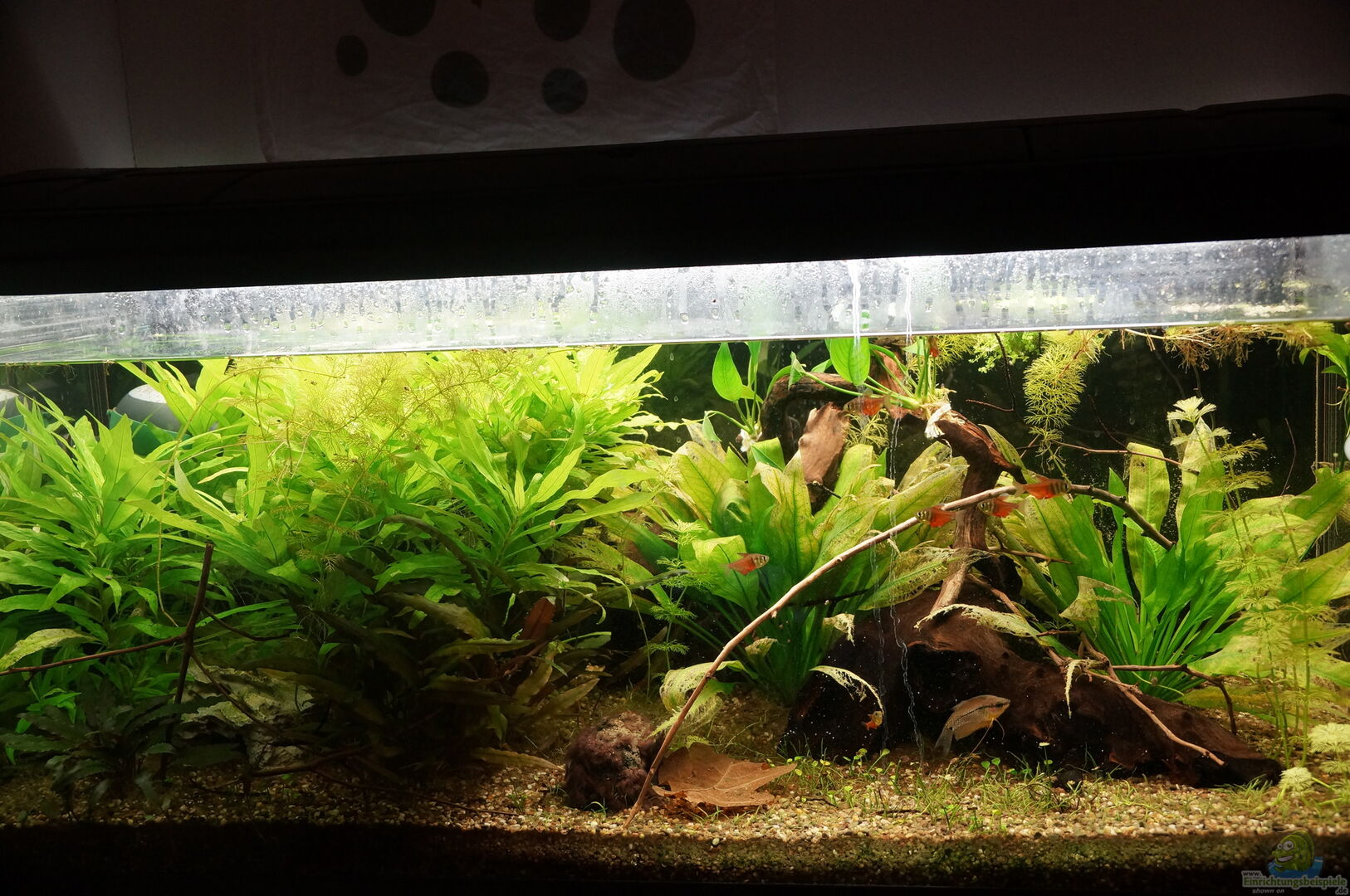 29.12.2018: Kurz vor dem einjährigen Jubiläum eine kleine Umstrukturierung vollzogen. Habe über den Online-Versand Lebendfutter bestellt und dabei eine Anubias geschenkt bekommen, welche ebenfalls integriert wurde. Insgesamt läuft alles seit dem letzten Update sehr stabil, Sorgen macht mir aber der Fadenfisch, der mir abgemagert erscheint, weshalb ich ihn in unaufmerksamen Phasen der immerhungrigen Roten von Rio extra zufüttere.