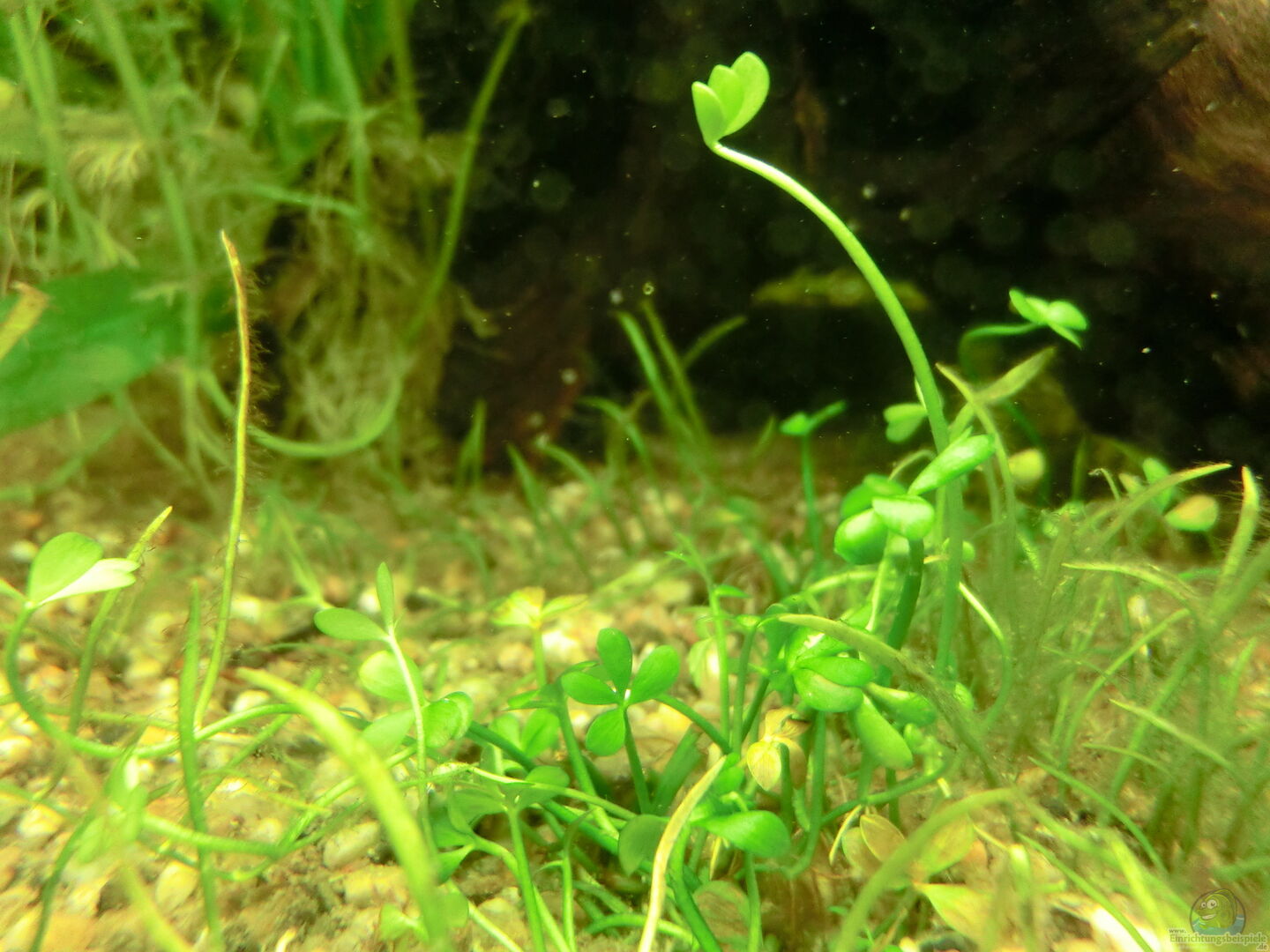 -Marsilea hirsuta, Zwergkleefarn, sehr hübsch, bildet in meinem Aquarium zwar nicht die namensgebenden Klee- sondern vielmehr kellenartige Blätter aus, wächst aber sehr schnell und wertet aber zusammen mit dem Neuseelandgras den Vordergrund optisch bedeutend auf.