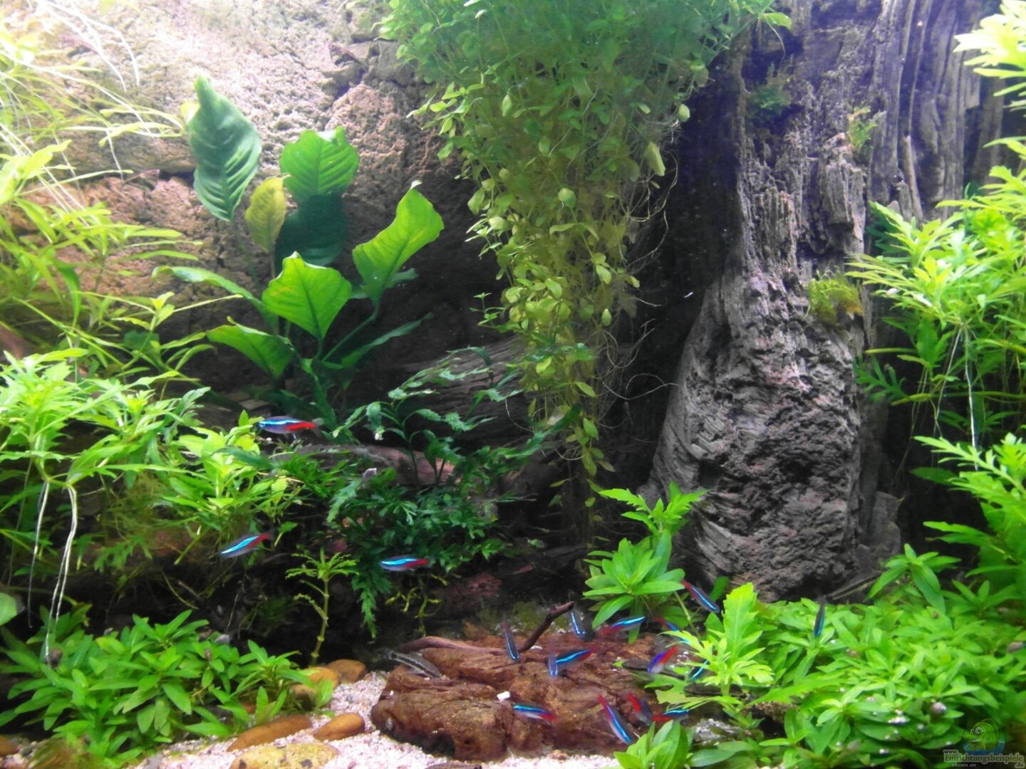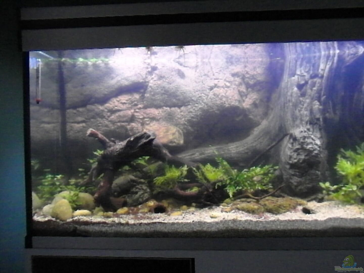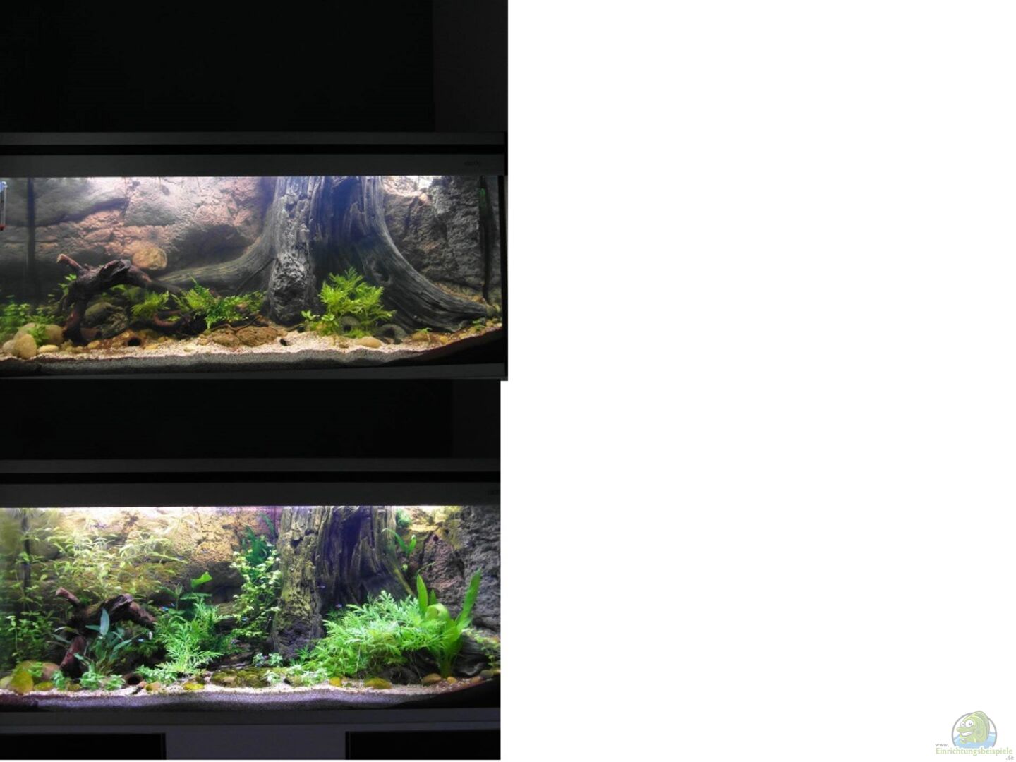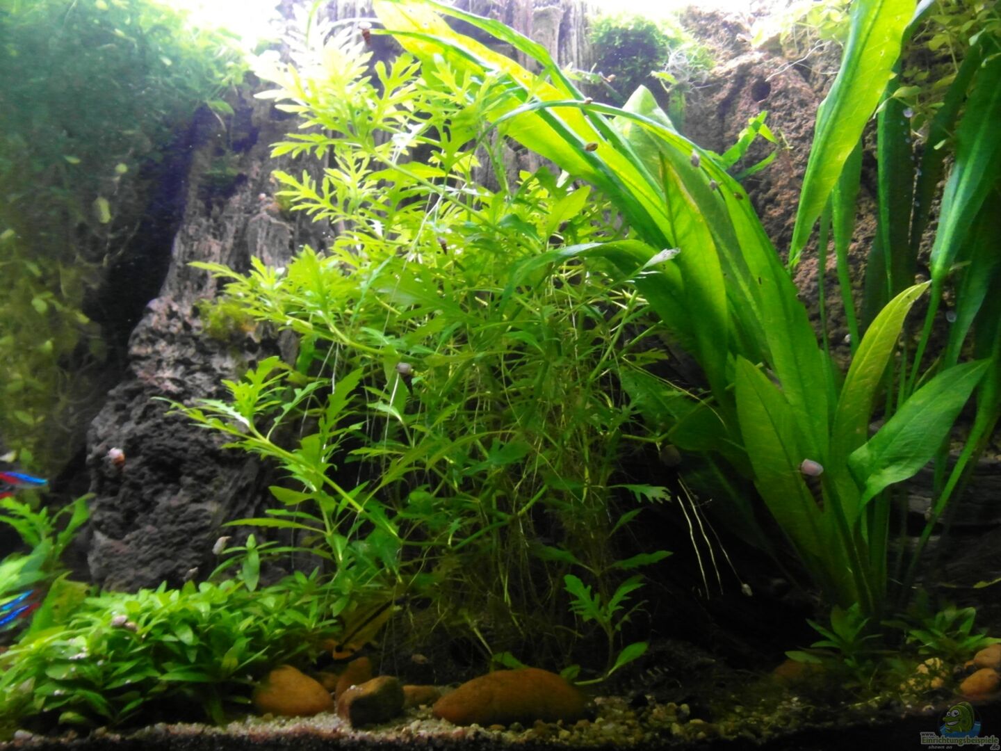 Abgestimmt auf die Bewohner des Beckens, welche einen eher dunkleren Lebensraum bevorzugen und den daraus resultierenden Lichtverhältnissen verwendete ich Pflanzen, welche auch mit wenig Licht zurechtkommen.
