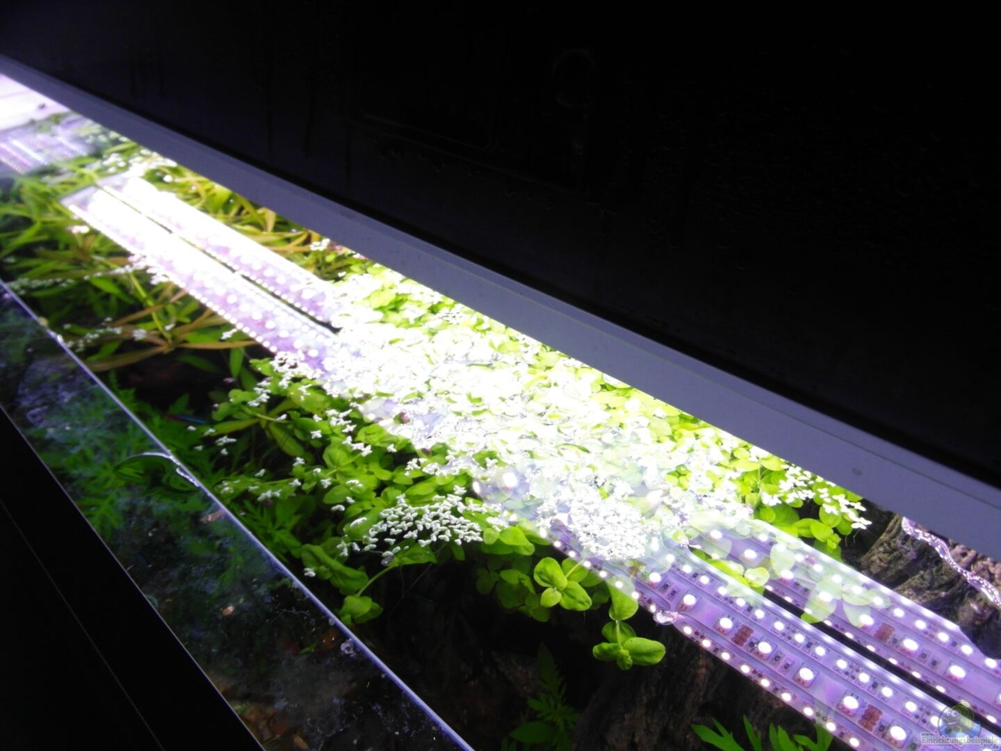 Zum Beispiel gedeiht meine Staurogyne repens, welche laut Literatur eher hohe Beleuchtungsstärke wünscht, wunderbar in meinem Becken, welches ja mit lediglich ungefähren 5.000 Lumen ab Lampe beginnt und in einer Tiefe von 20 cm vielleicht nur noch die Häfte an Lumen an die Pflanzenblätter bringt.