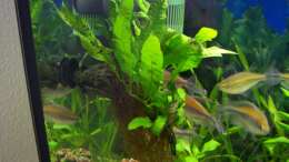 Au??erdem sind noch vier blaue Neons, zwei Feuersalmler, drei Kardinalfische, drei Ohrgitterharnischwelse und drei Armanogarnelen im Becken, da das kleine 60iger Becken wegmusste und diese Asyl brauchten.