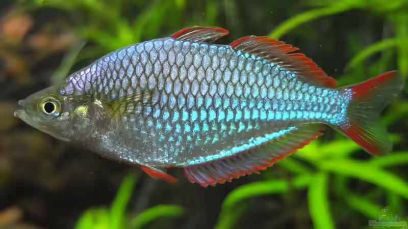 Weitere Namen lauten Zwerg-Neon-Regenbogenfisch oder englisch