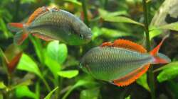 Sehr beeindruckend ist das Balzverhalten der Männchen, die in den Morgenstunden sich gegenseitig mit aufgerecktem, roten Flossensaum durch das Aquarium jagen. Dabei bleibt es immer friedlich, gegenseitige Verletzungen kommen nicht vor.