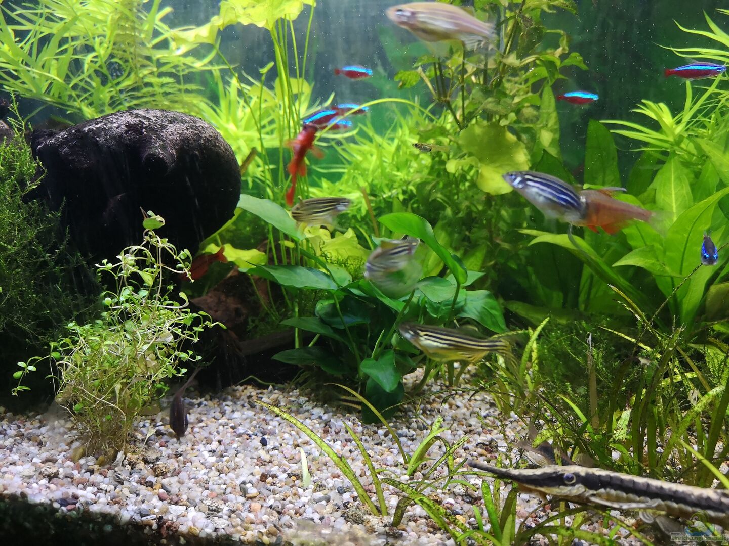 genau mein Geschmack. Ich mag Aquarien mit vielen Pflanzen. Und auch diesen schönen bunten Besatz. Ich mag diese Gesellschaftsbecken mit den vielen verschiedenen Arten sehr gern. Vor allem wenn der Besatz so schön harmonisch zusammen passt