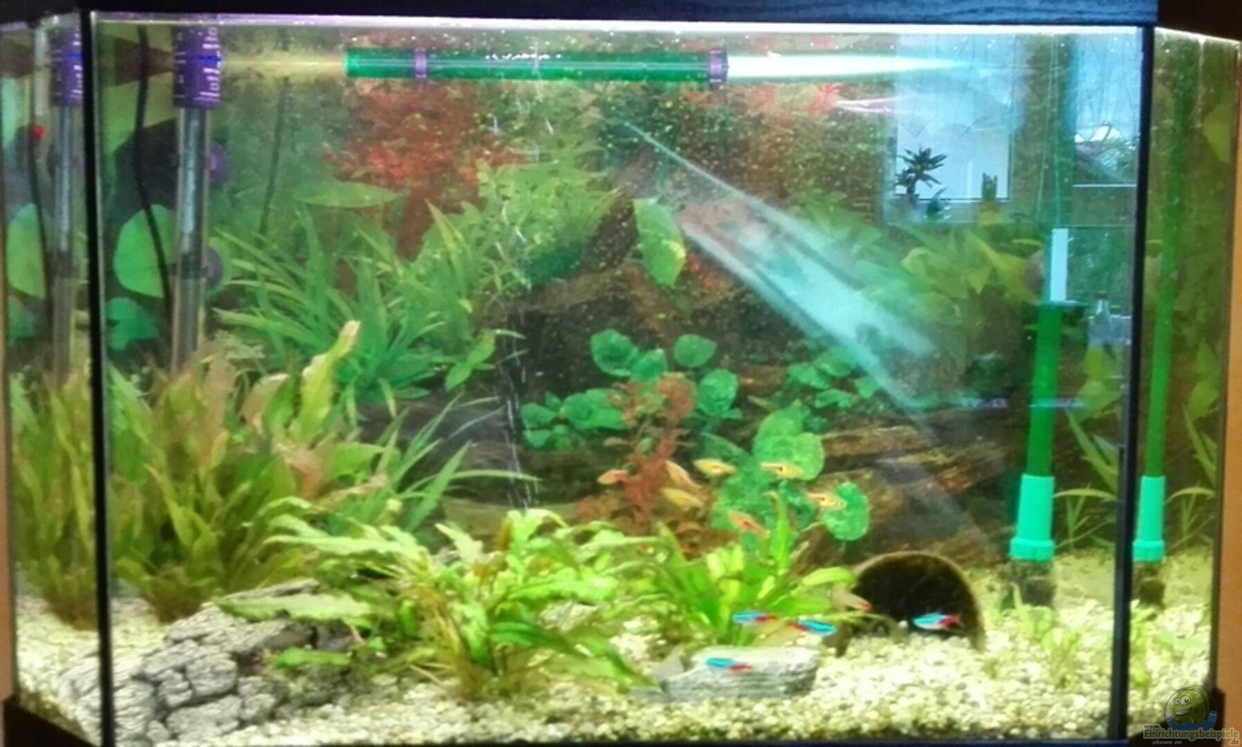 Das Aquarium ist nur als ??bergangslösung gedacht, aber ich wollte es euch mal vorstellen. Bald werde ich mit ein neues Aqua kaufen und dies im Asien Stil einrichten und euch dann auch vorstellen!