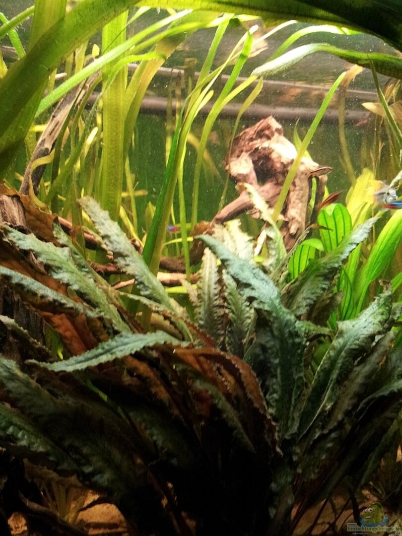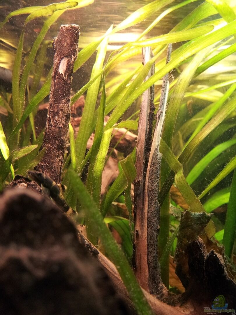 ein wirkliches tolles Becken. Die Wurzeln gefallen mir sehr gut. Wenn jetzt hintenherum noch die Pflanzen ein wenig wachsen sieht es bestimmt absolut klasse aus. Grad die Vallis eignen sich da in meinen Augen immer sehr gut (brauchen aber in neuen Aquarien immer ein wenig bis sie mal losslegen zu wachsen und sich zu vermehren) wachsen auch im schmalen Bereich zwischen Glas und Wurzel/Steine sehr gut. Wenn dann mittedrin noch eine Echi und Crypto gut wächst bestimmt eine Augenweide.
