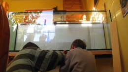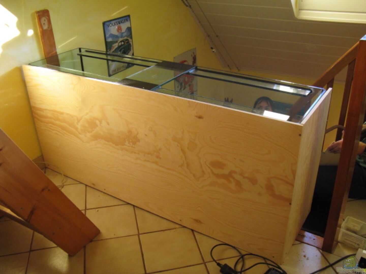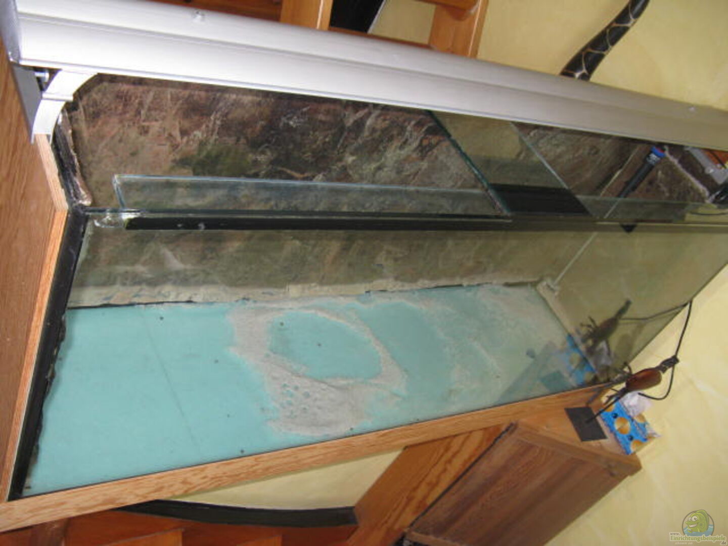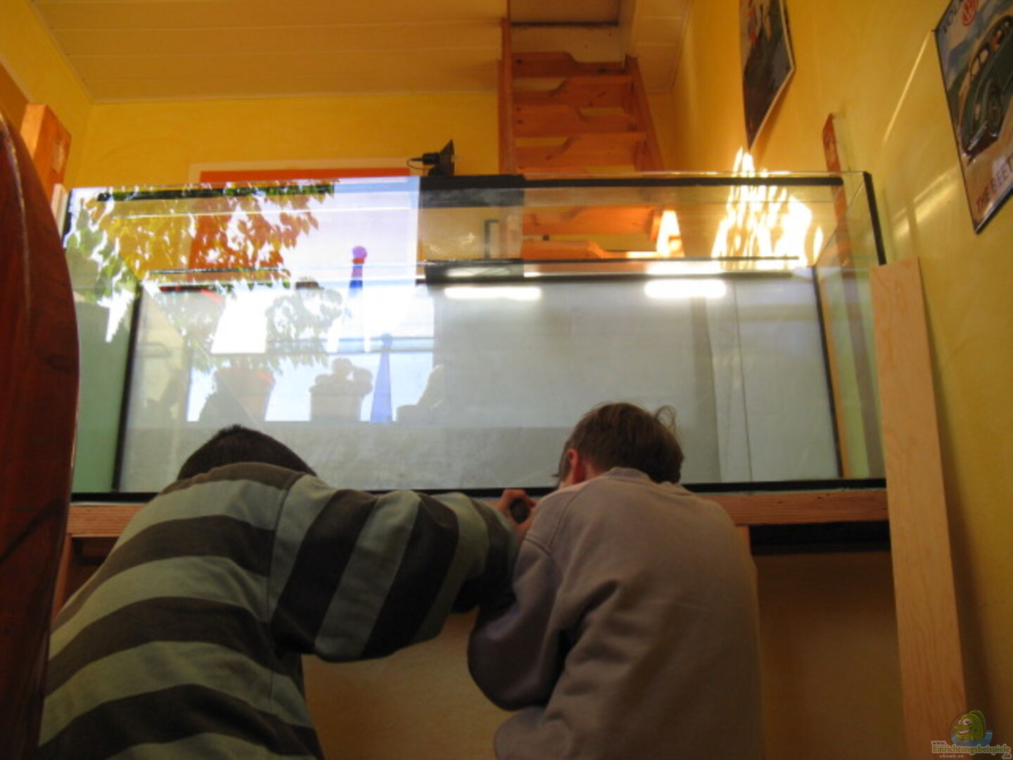 23.2.2008 Heute haben wir die Rückwand eingeklebt. Morgen kommt der Sand in das Becken.