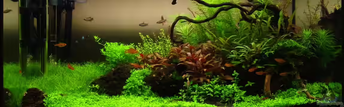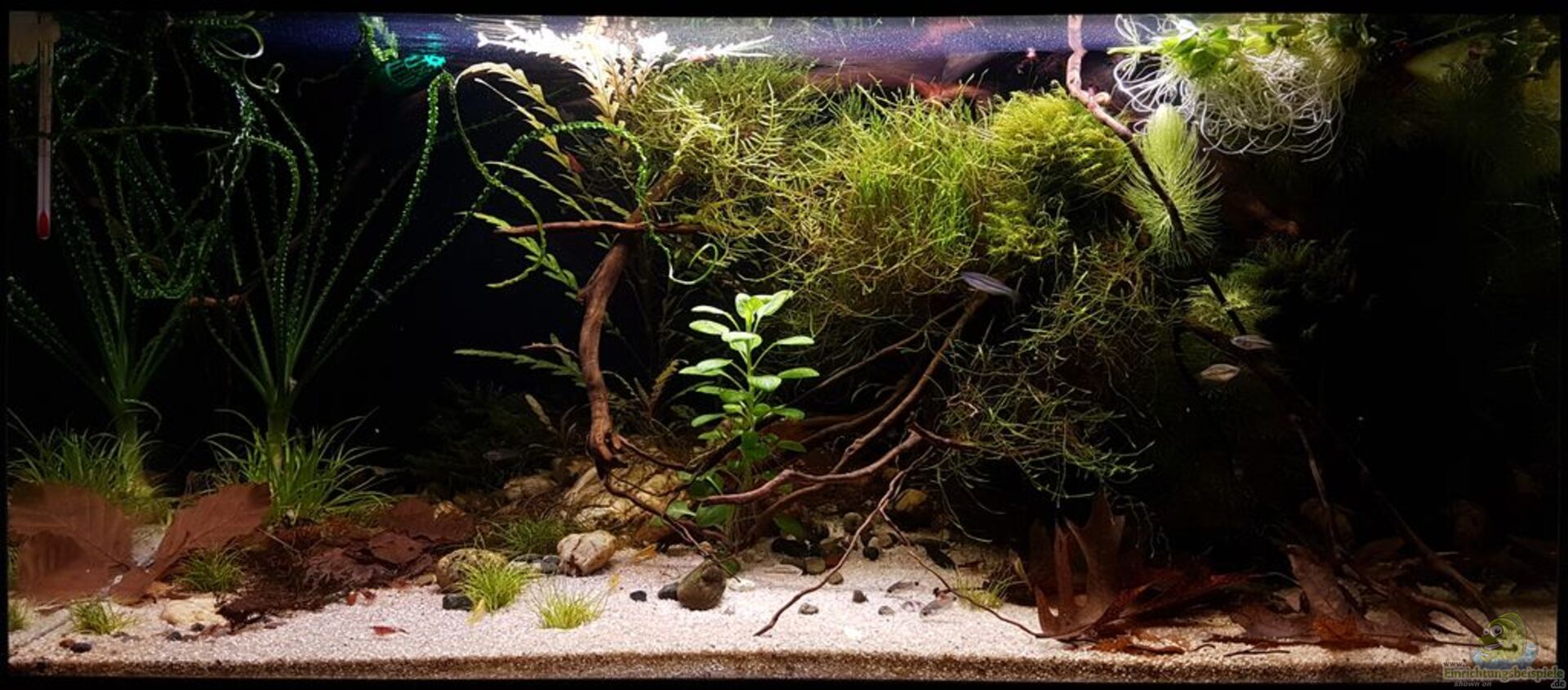 Dieses kleinen Becken sollte dem Stil eines Biotops nachempfunden werden. Ich bin gespannt, wie es sich entwickelt. Weiterhin versuche ich, bei diesem Aquarium den Pflegeaufwand so gering wie möglich zu halten. D.h. lediglich Wasser wechseln und füttern. Eine Düngung (weder CO2 noch Flüssigdünger) für die Pflanzen ist nicht vorgesehen.